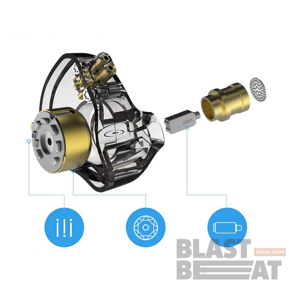 Сбалансированный арматурный блок обладает характеристиками чистого человеческого голоса и высокой частоты. Модернизированный подвижный блок 30095 обладает более чувствительными переходными характеристиками, что дает огромный скачок в динамических характеристиках, мгновенной детализации и плотности звука музыки.