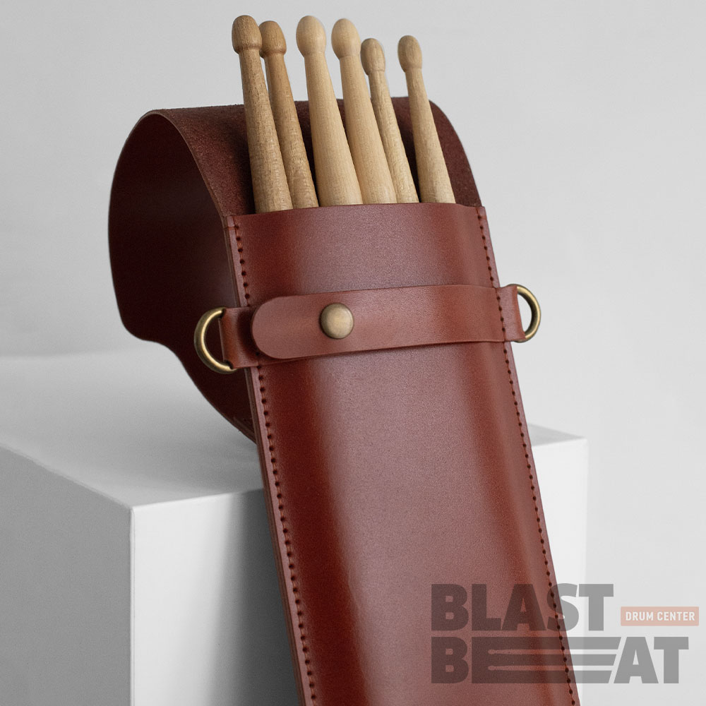Первоклассный кожаный чехол "ТРИО" коричневого цвета для трёх пар барабанных палочек с подвесами от отечественного бренда Ленивая Сова. Настоящая, кропотливая и качественная ручная работа!