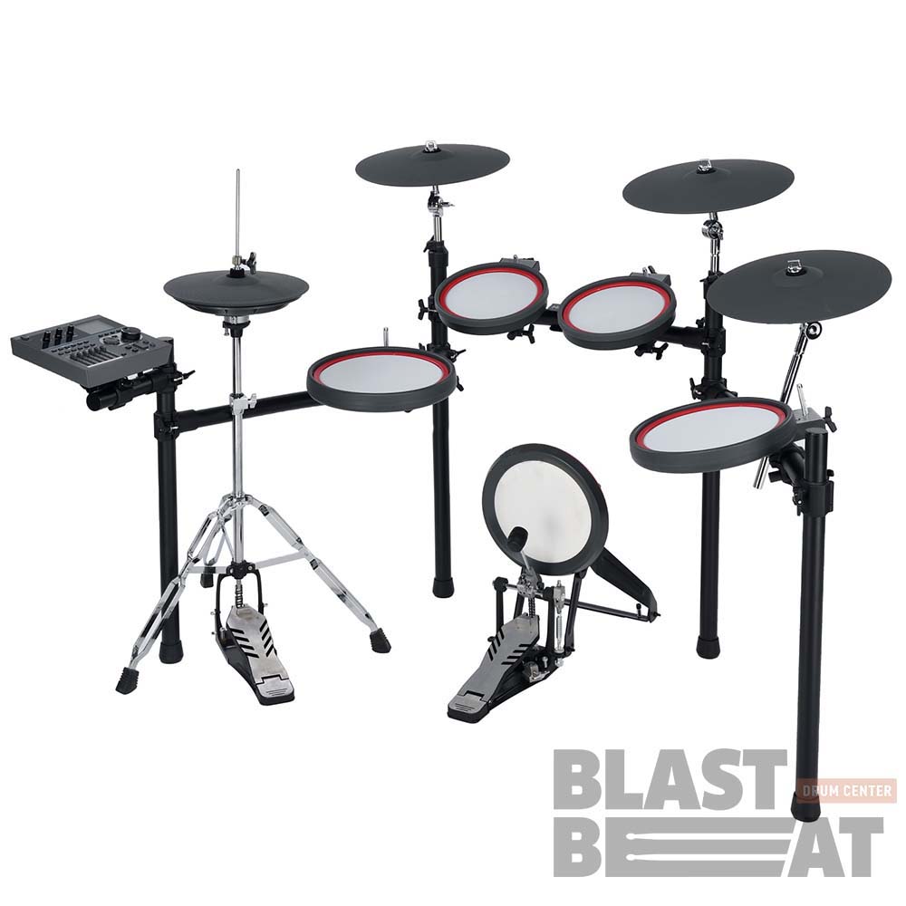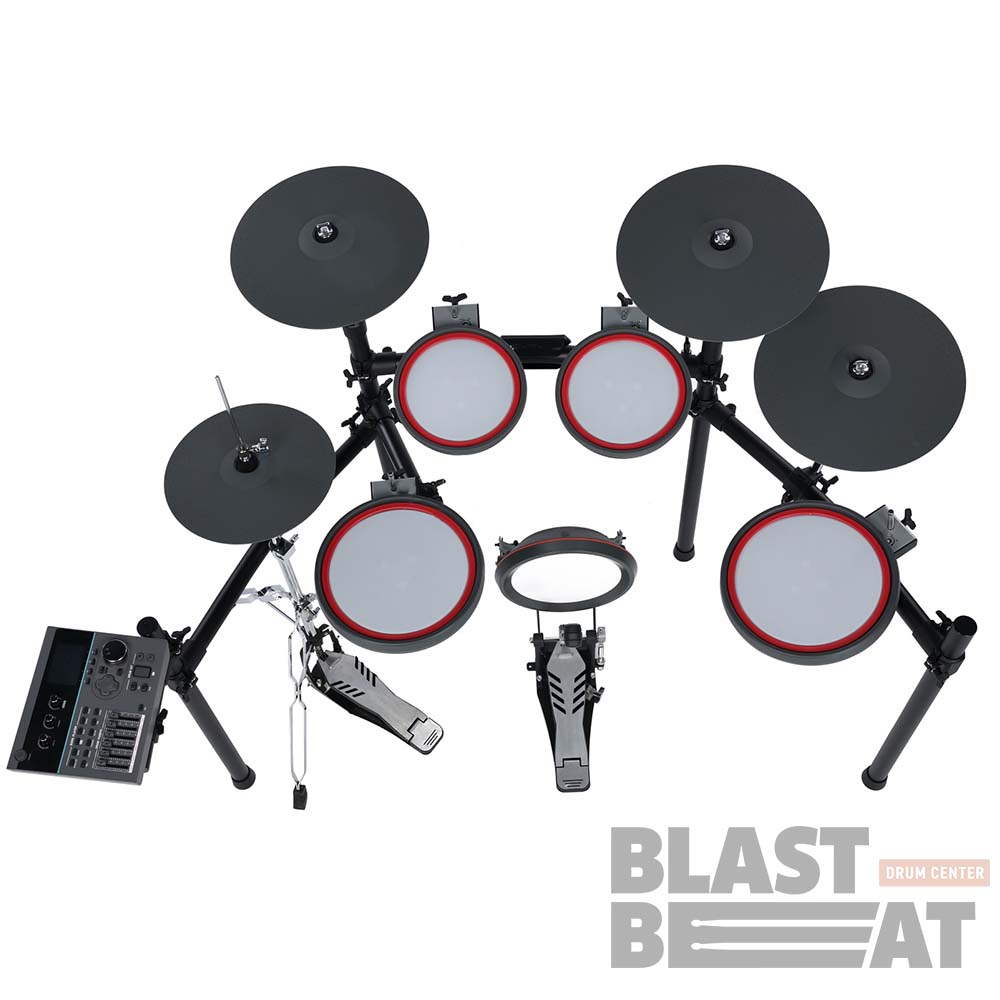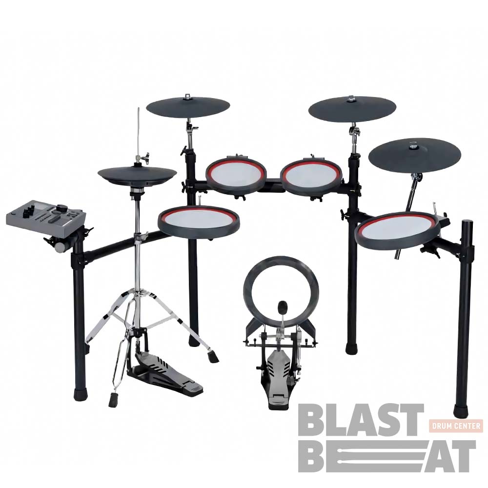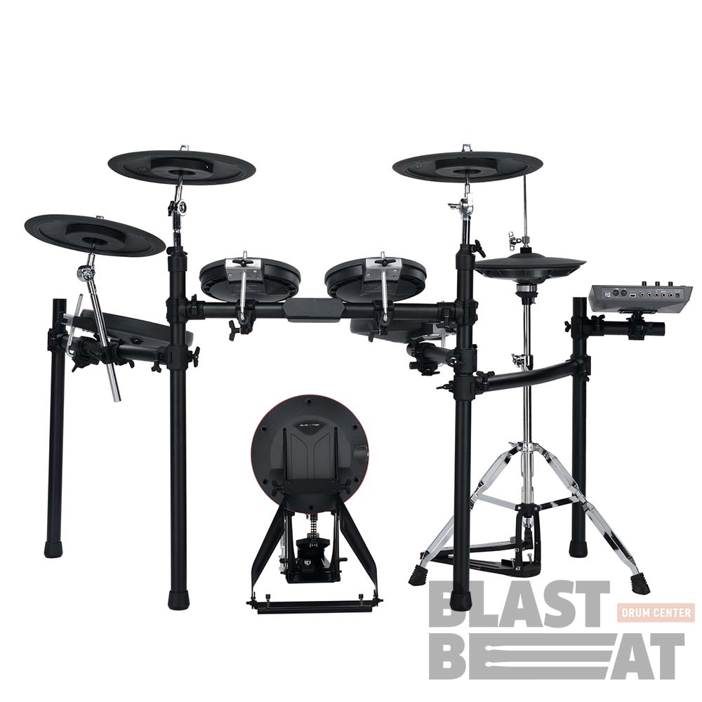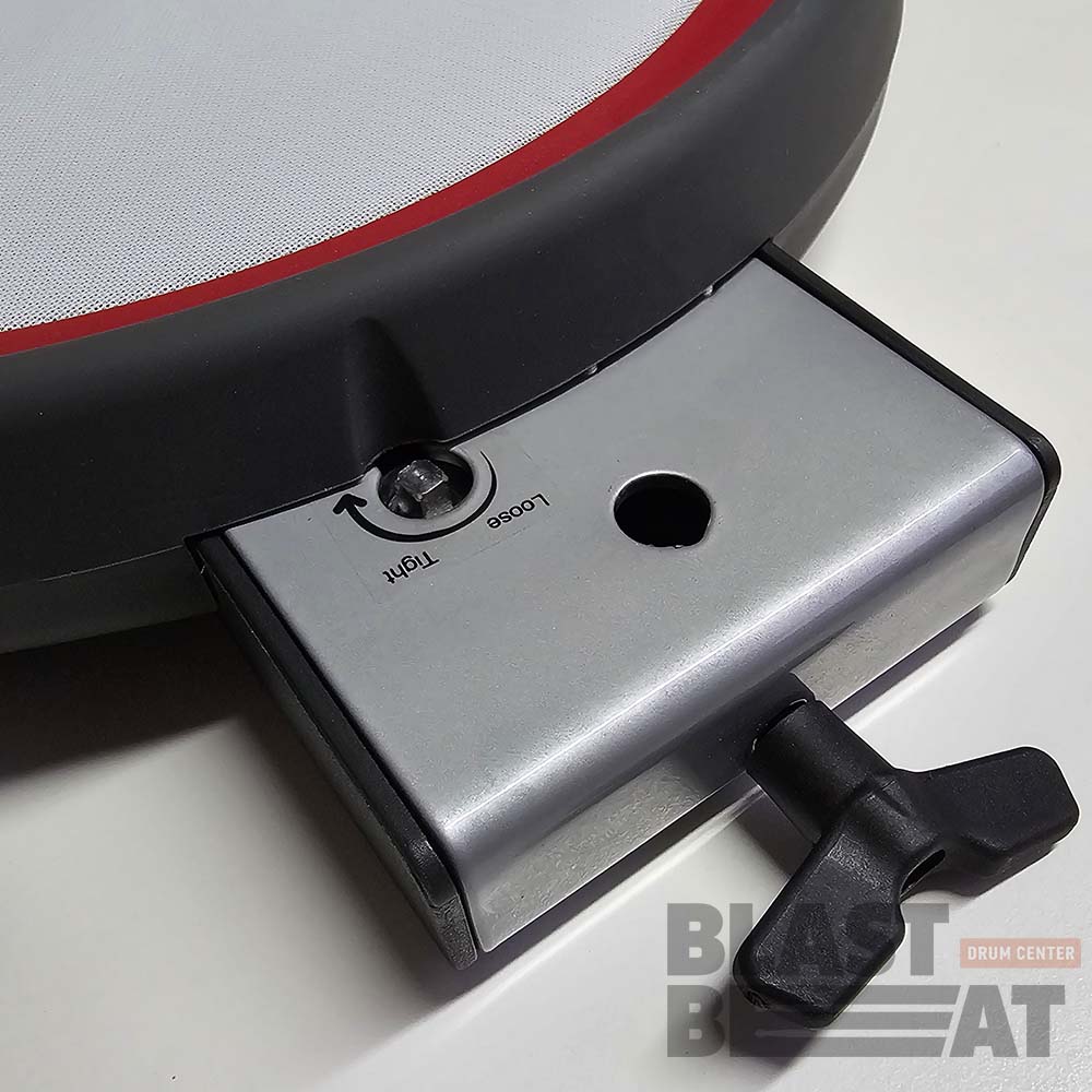 - Большой пэд бас-барабана с сетчатым покрытием, педаль из алюминиевого сплава с коррекцией положения колотушки.