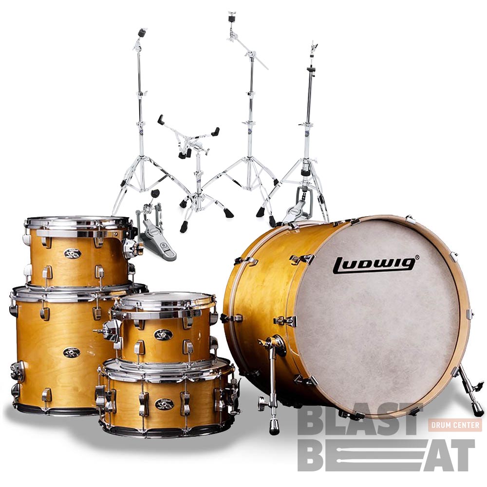 Полный комплект барабанов со стойками! Профессиональная ударная установка Ludwig LCEM52204 серии Evolution Maple, выполненная в натуральном цвете с лаковым покрытием "Vanish".
