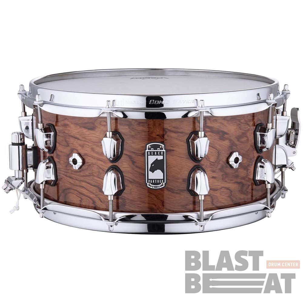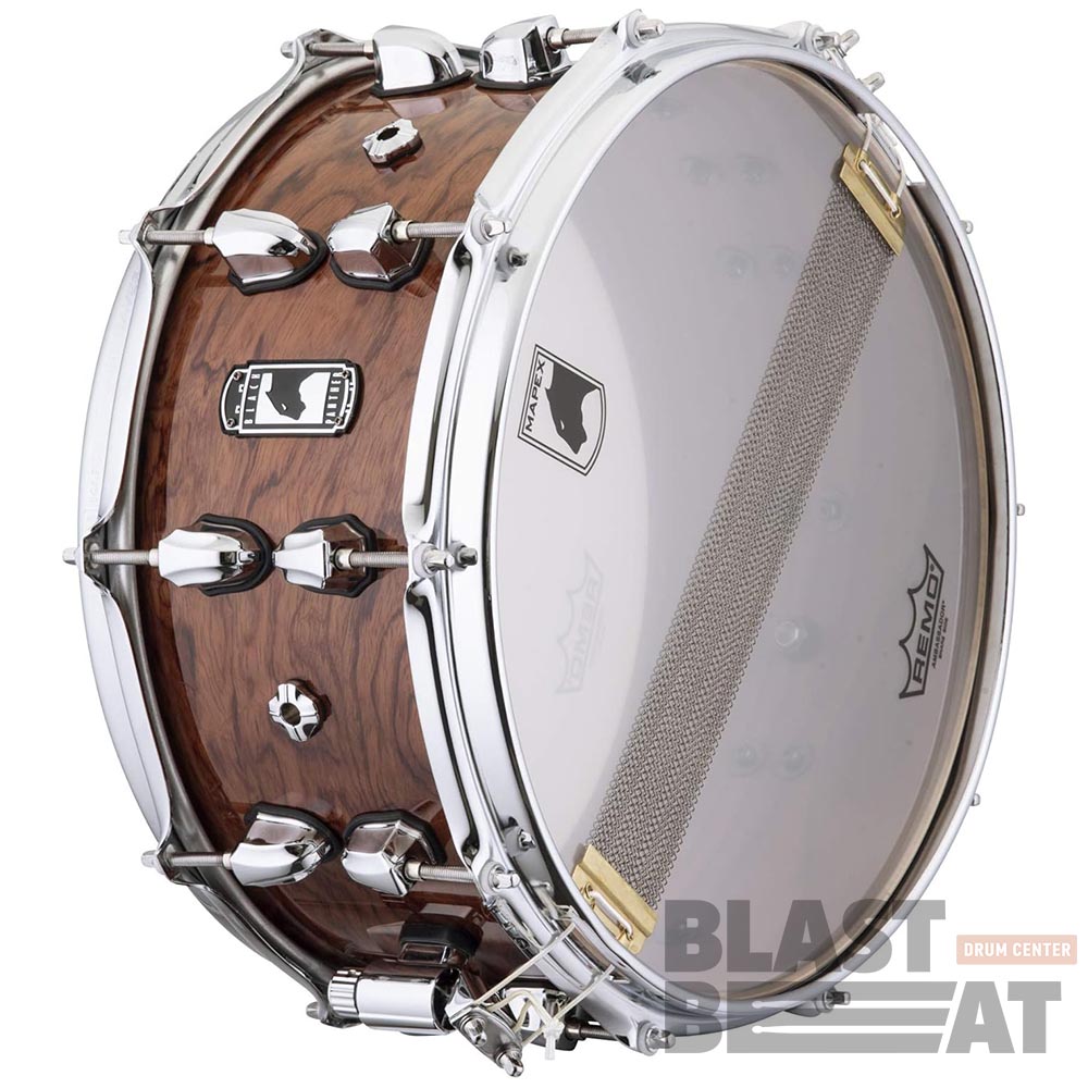 Корпус толщиной 6,85 мм собран из 7 слоёв берёзы и ореха: берёза даёт фокус и атаку, орех добавляет тепла и плотности, а внешний слой из ореха в сочетании с натуральным глянцевым покрытием подчёркивает благородную древесную текстуру. Лаги Mapex In-Line Locking B-Lugs и 10 регулировочных винтов обеспечивают точную и стабильную настройку, а хромированная фурнитура подчёркивает премиальный внешний вид. Обода Sonic Saver толщиной 2,3 мм смягчают атаку, улучшают обертона и делают игру более комфортной, особенно при римшотах.