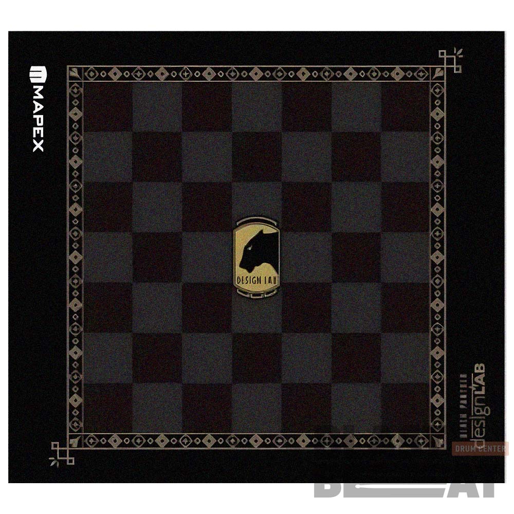 Высококачественный коврик Mapex PMKM-M23P05 с принтом Chess Grid серии Design Lab Black Panther для барабанной установки, который обеспечивает надёжность и устойчивость оборудования