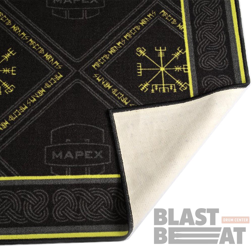 Высококачественный коврик Mapex PMKM-M22P09 с принтом Royal Viking для барабанной установки, который обеспечивает надёжность и устойчивость оборудования, бас-барабана, стоек и педалей благодаря нескользящему резиновому слою внизу.