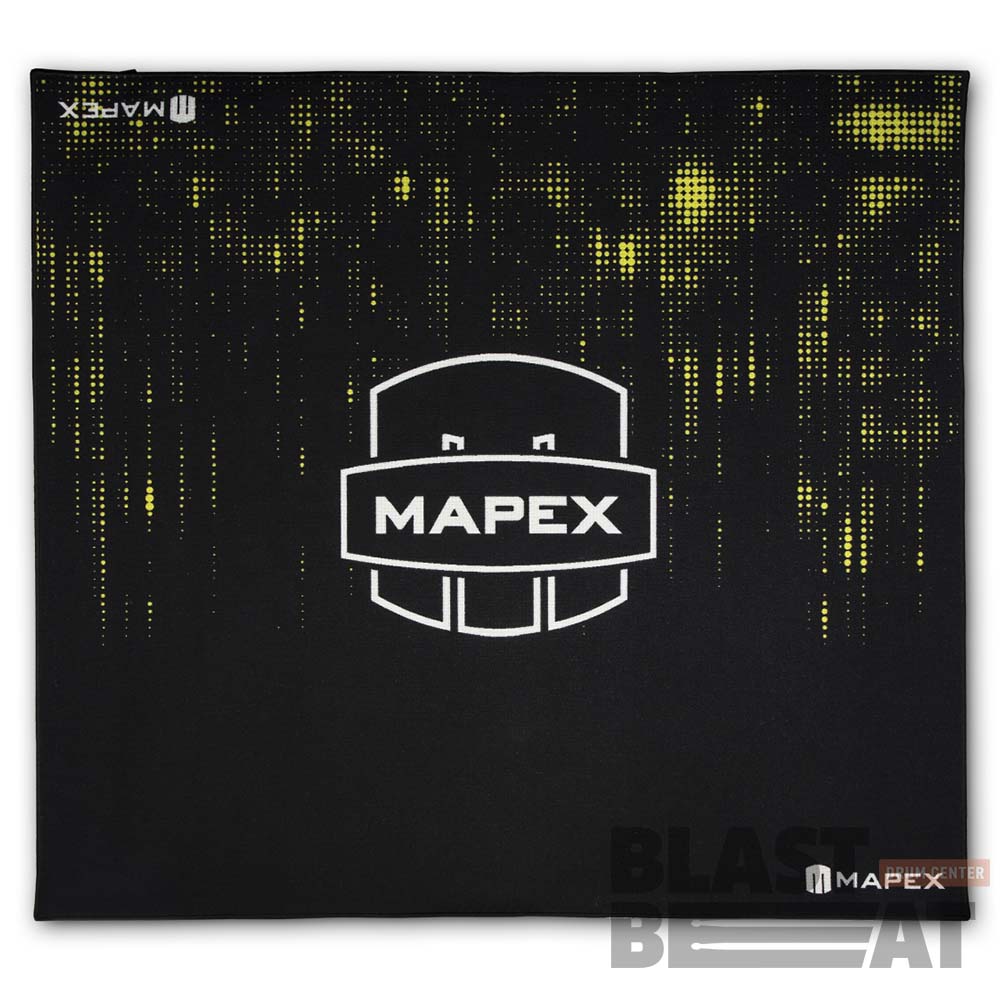 Высококачественный коврик Mapex PMKM-M22P12 с принтом Infinity Matrix для барабанной установки, который обеспечивает надёжность и устойчивость бас-барабана, стоек и педалей благодаря нескользящему резиновому слою внизу.