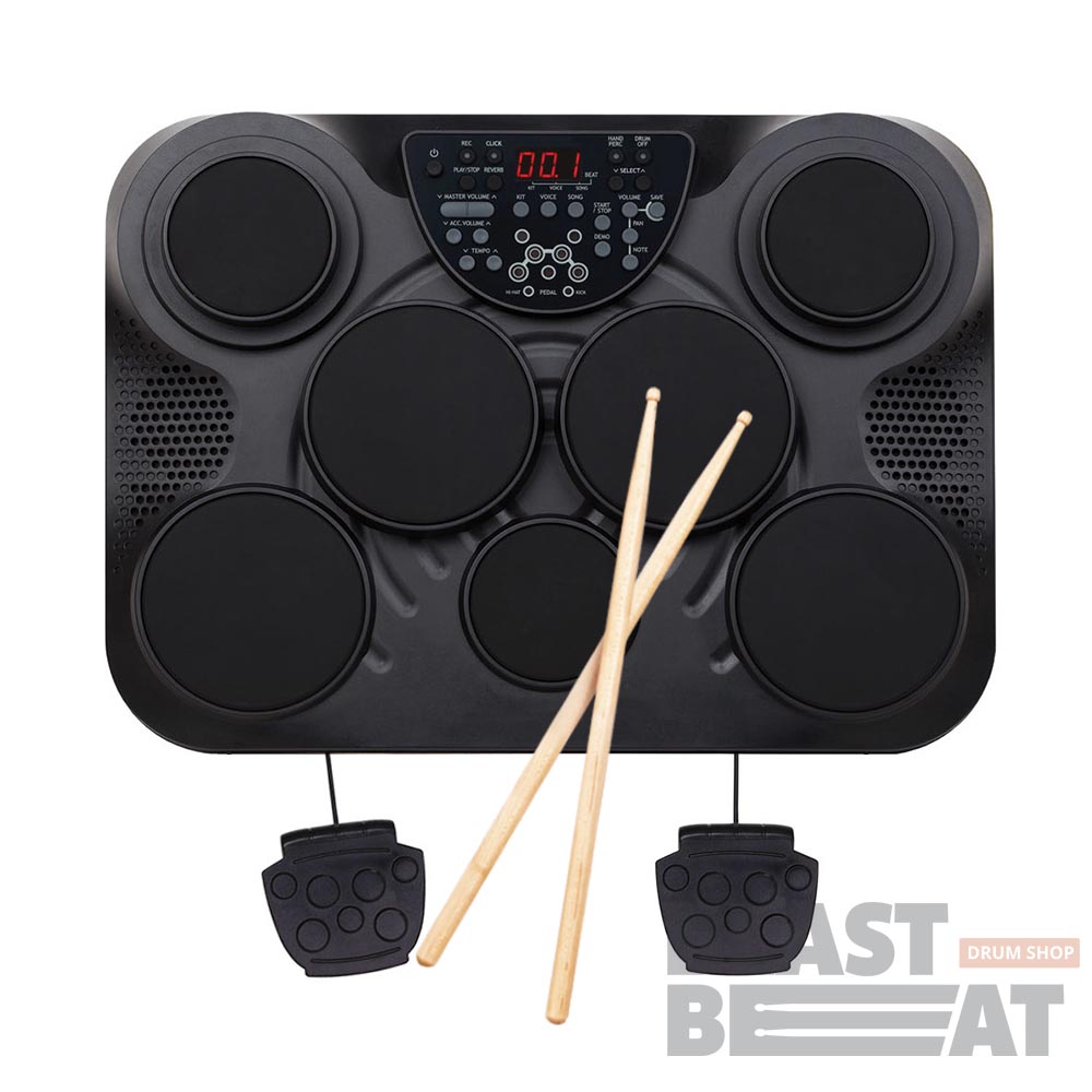 Компактная электронная ударная установка в виде консоли Medeli DD315 Portable Digital Drums. Идеальное решение для начинающих барабанщиков и репетиций в домашних условиях.