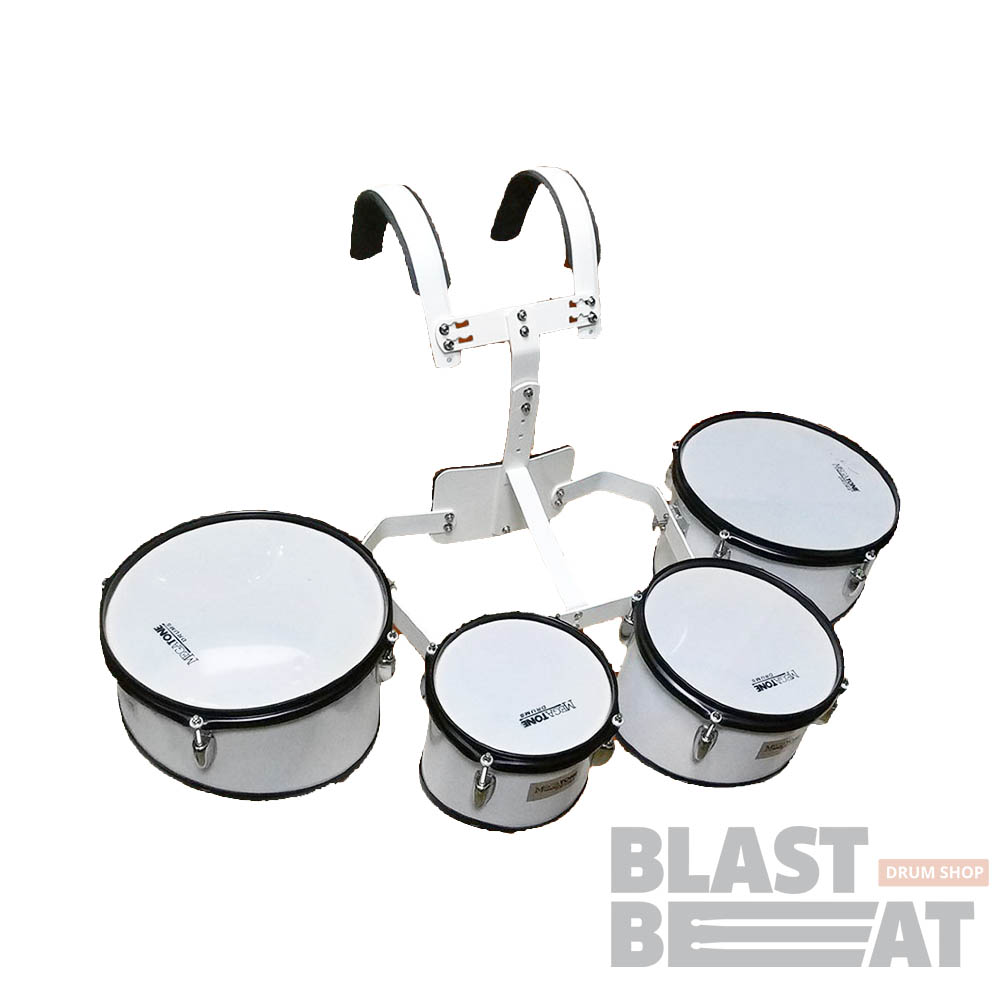 Полный набор из 4-х теноровых маршевых барабанов 8, 10, 12 и 13 дюймов с корсетом и креплениями Megatone MDS-404HA/WH.