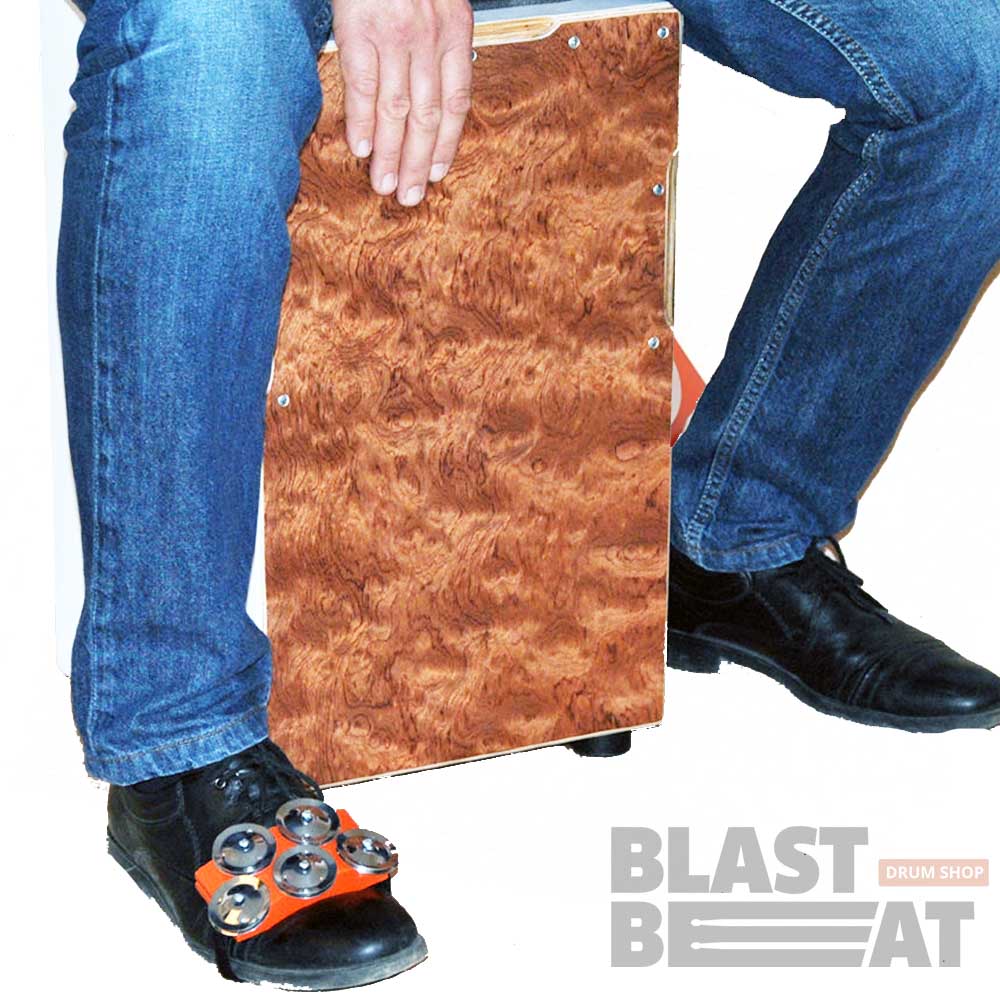 Деревянный тамбурин со 5-ю парами стальных джинглов и креплением ремешком на липучке на ногу от отечественной компании Мозеръ.