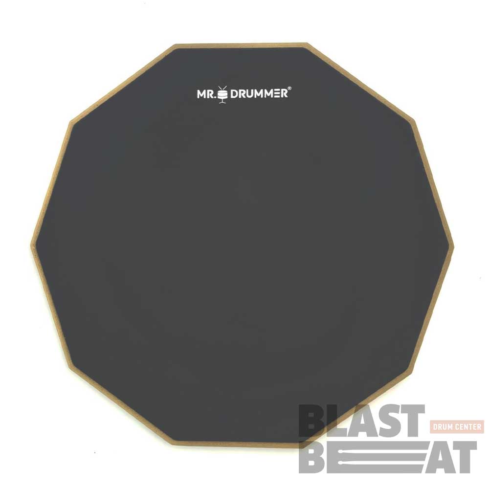 Гранёный темно-серый резиновый пэд на деревянной основе диаметром 11 дюймов от российского бренда Mr. Drummer (Мистер Драммер).