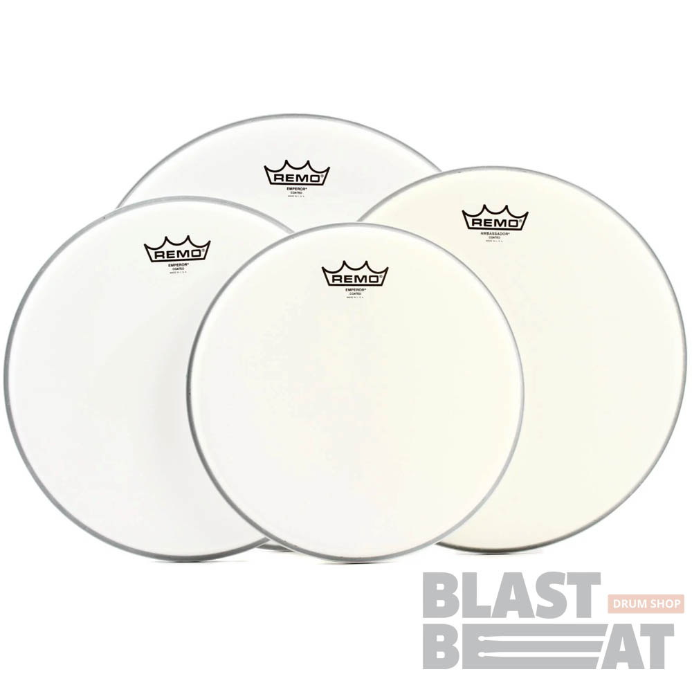 Комплект двухслойных пластиков REMO Emperor Coated с напылением для томов 12, 13 и 16 дюймов + дополнительный пластик на малый 14 дюймов Ambassador Coated.