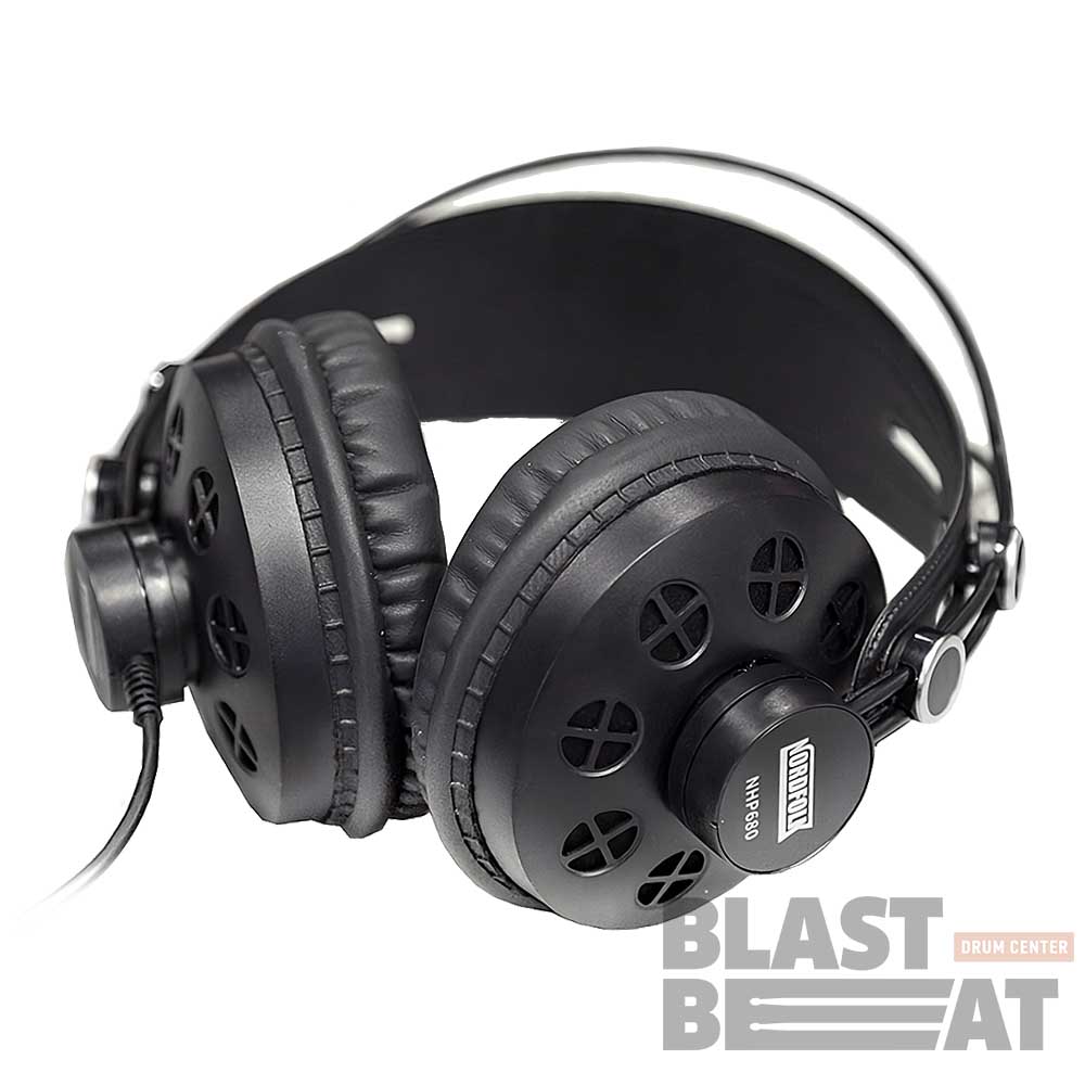Недорогие динамические полуоткрытые мониторные наушники NordFolk NHP 680 для барабанщиков, музыкантов, звукорежиссеров.