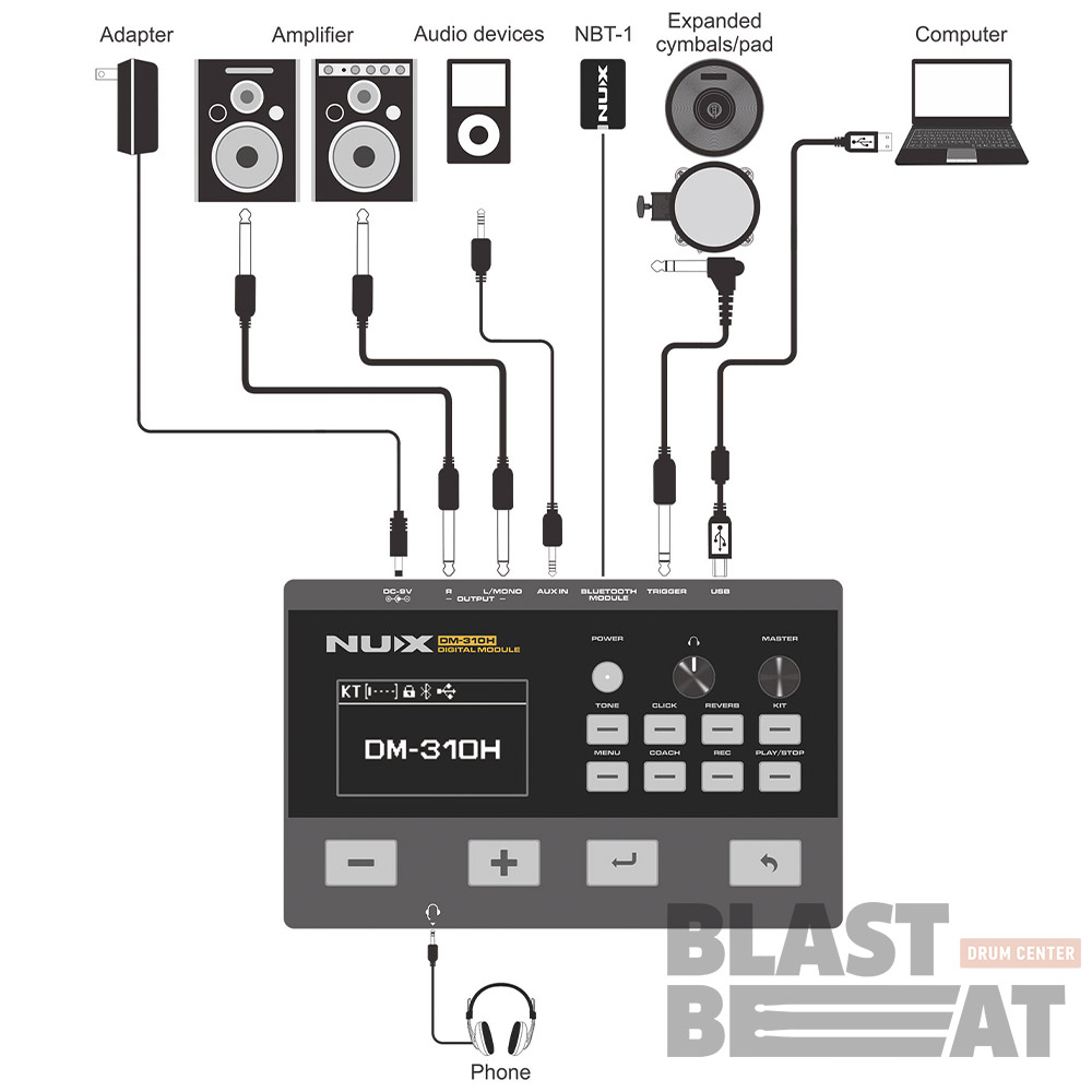NUX DM-310H — это полноценная цифровая студия для обучения, творчества и выступлений. Совмещая передовые технологии, удобство и профессиональное качество звука, она открывает новые горизонты для барабанщиков всех стилей и направлений.
