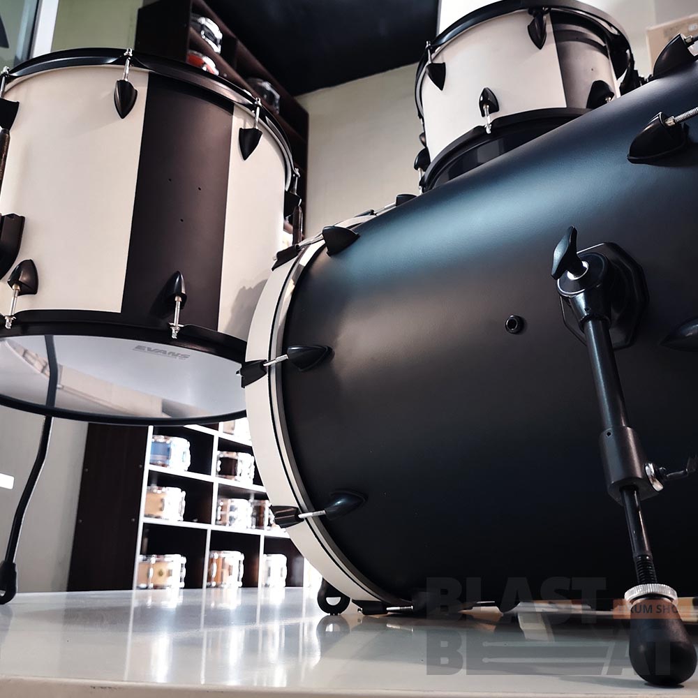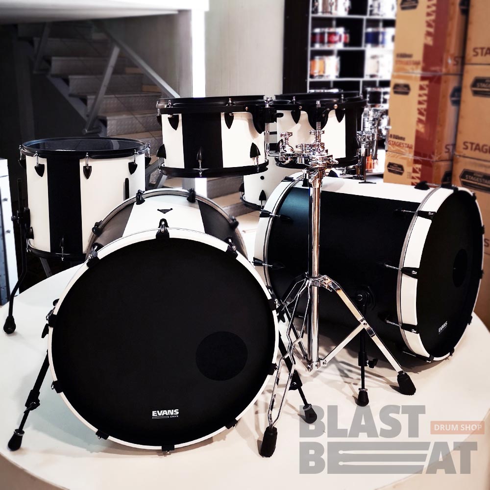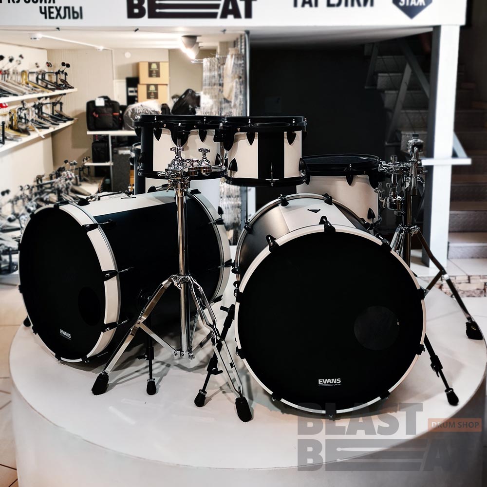 Уникальная кастомная версия сета с двумя глубокими бочками в матовой черно-белой покраске - единственная в мире.