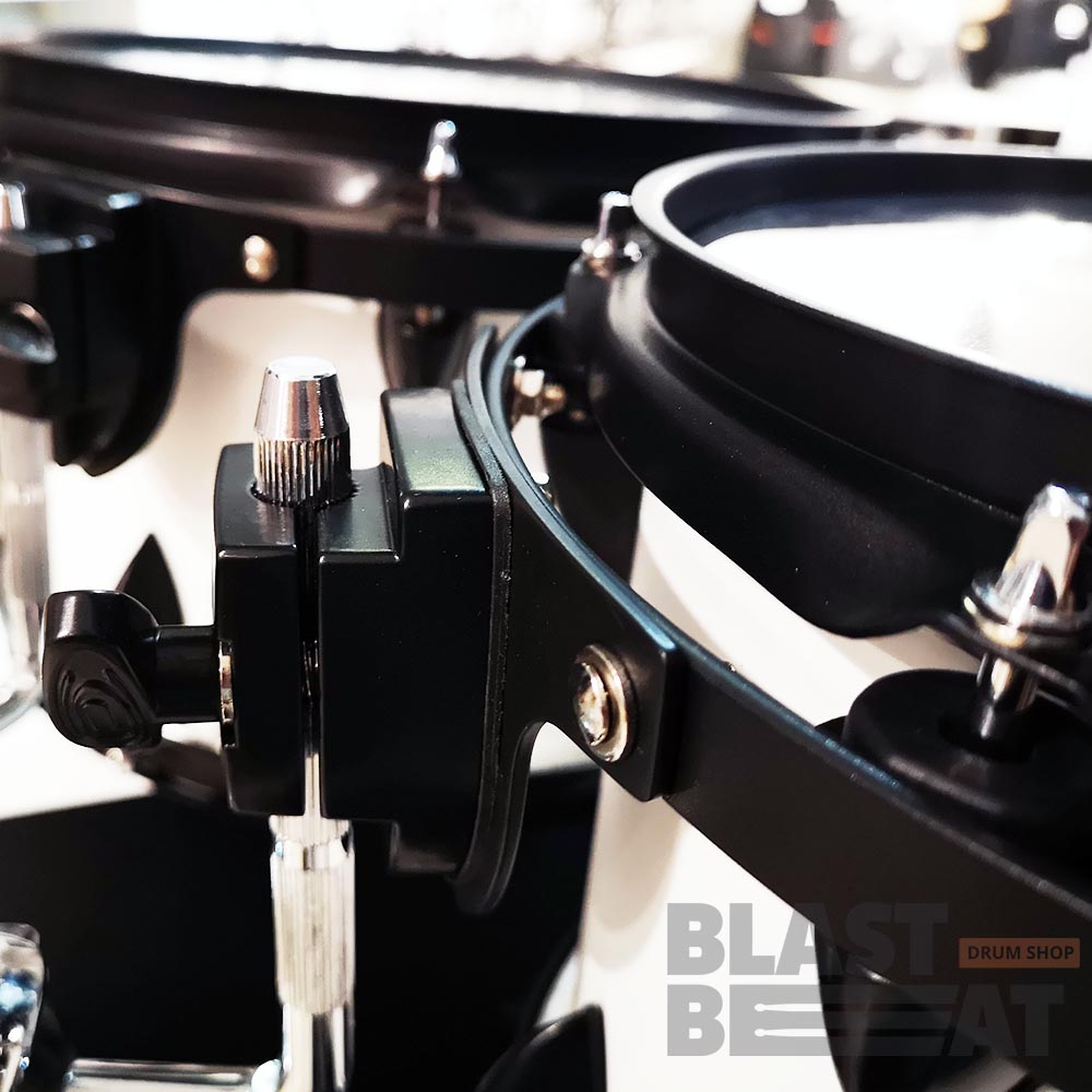 - 3 том-тома с независимыми подвесами 10x8, 12x8 и 13x10 дюймов, пластики Evans Black Chrome (ударные) и G1 (резонаторные), обода штампованные, 6 лагов