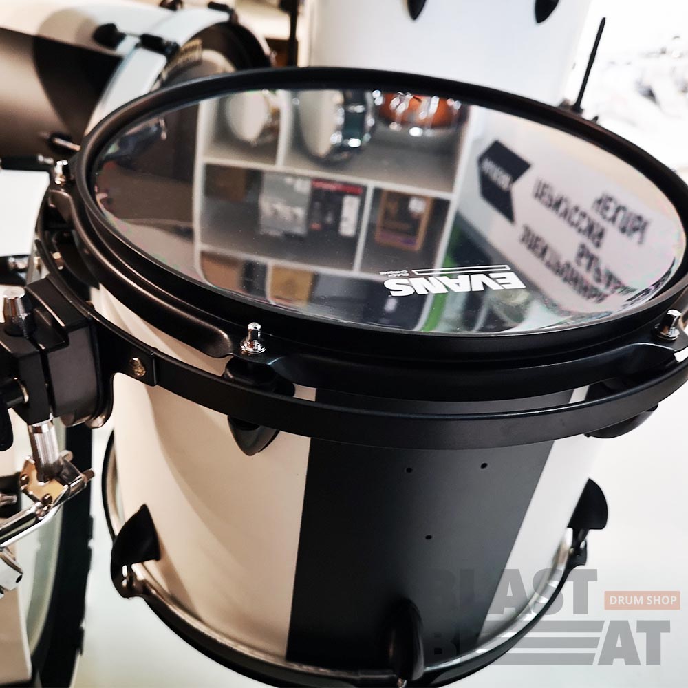 - Флор-том с ножками 16х13 дюймов, пластики Evans Black Chrome (ударные) и G1 (резонаторные), обода штампованные, 8 лагов