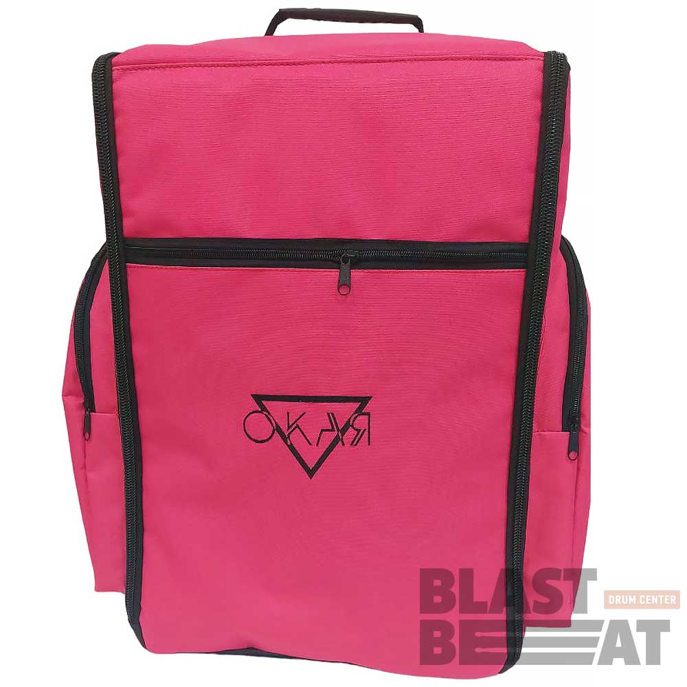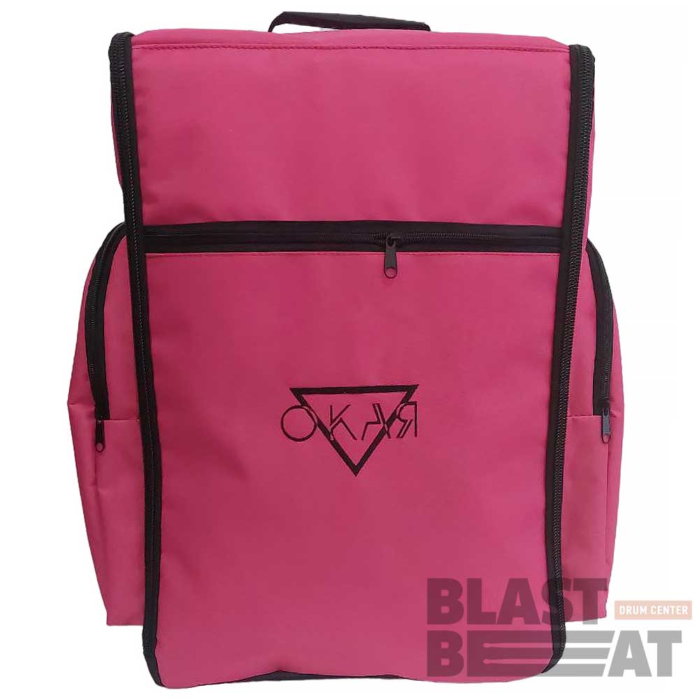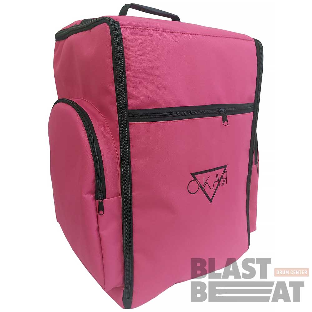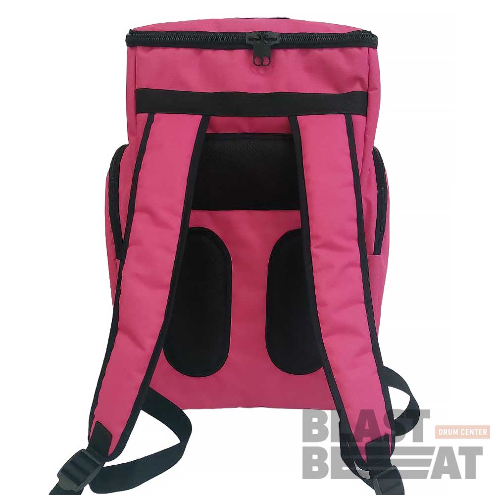 Качественный чехол-рюкзак для кахона размером 300x500x300 мм, выполненный из плотной водоотталкивающей розовой ткани.