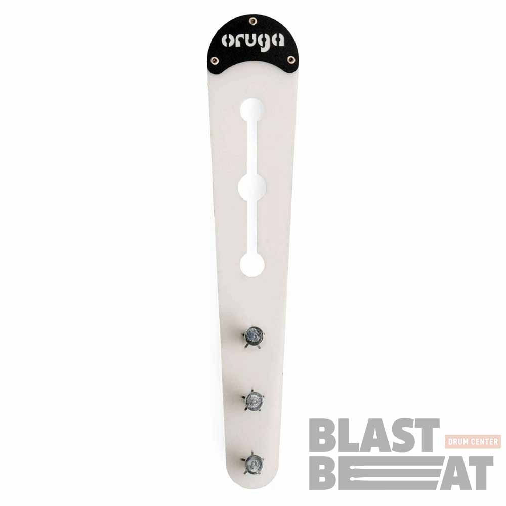 ORUGA SRO - это эффект Sizzler для хай-хэта и тарелок с 3 заклепками на гибкой основе. Благодаря трём отверстиям в пазу крепления позволяет размещать его на инструменте в трех разных положениях.