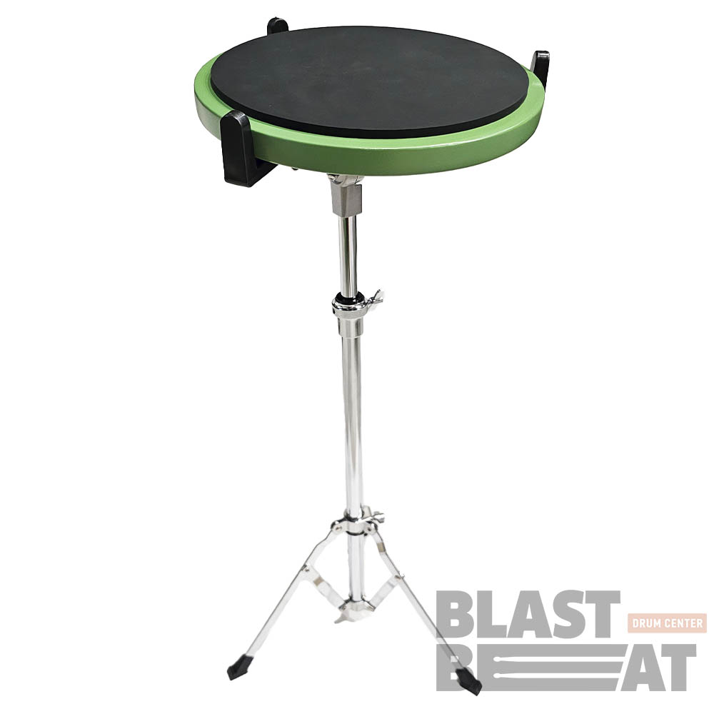 Тренировочный набор от бренда PC Drums: круглый силиконовый пэд 10 дюймов с резьбой М8, лёгкая телескопическая стойка для малого барабана с регулироемой высотой и углом наклона пэда.
