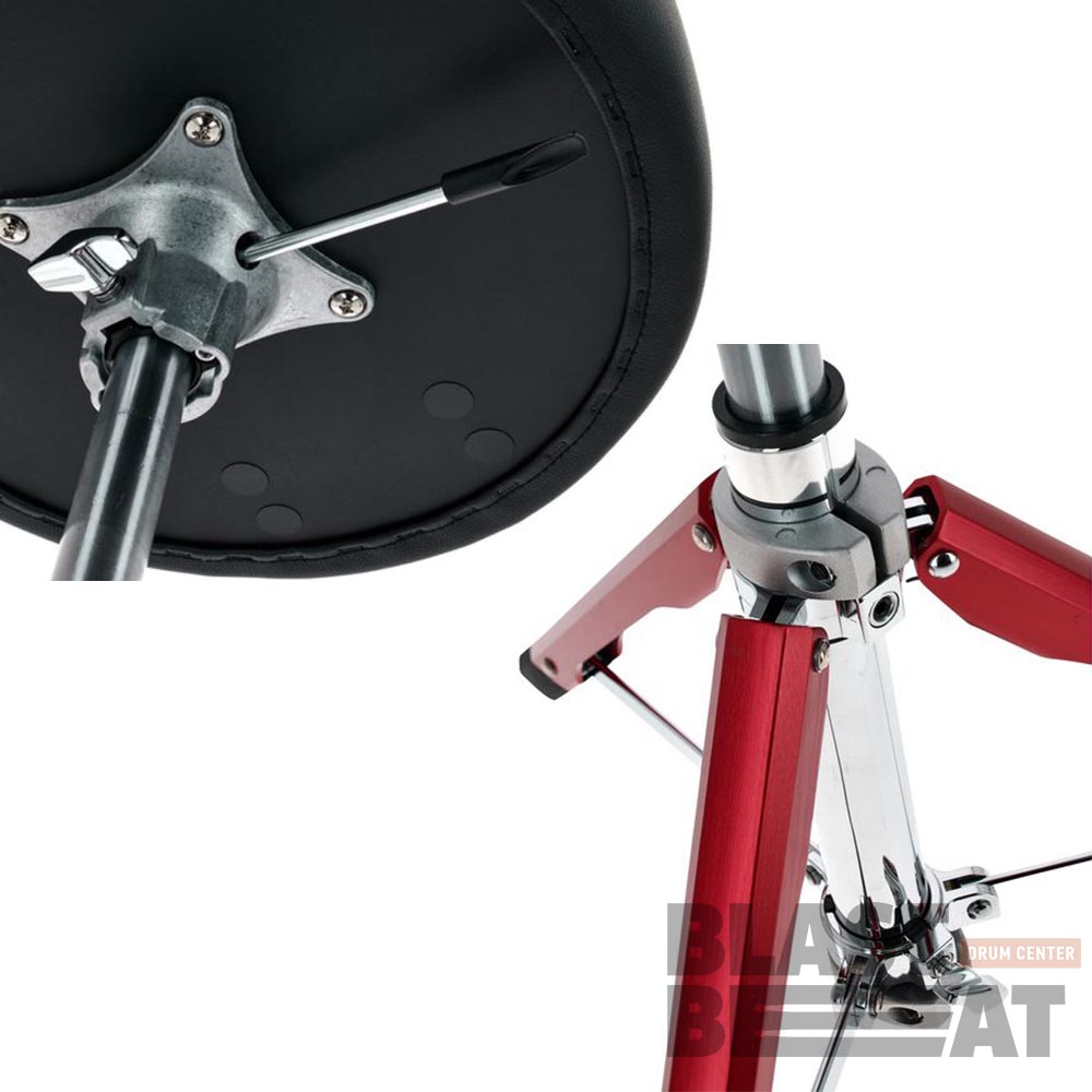 Круглый стул для барабанщика Pearl из серии Roadster D-1500RGL/R с красными ножками.
