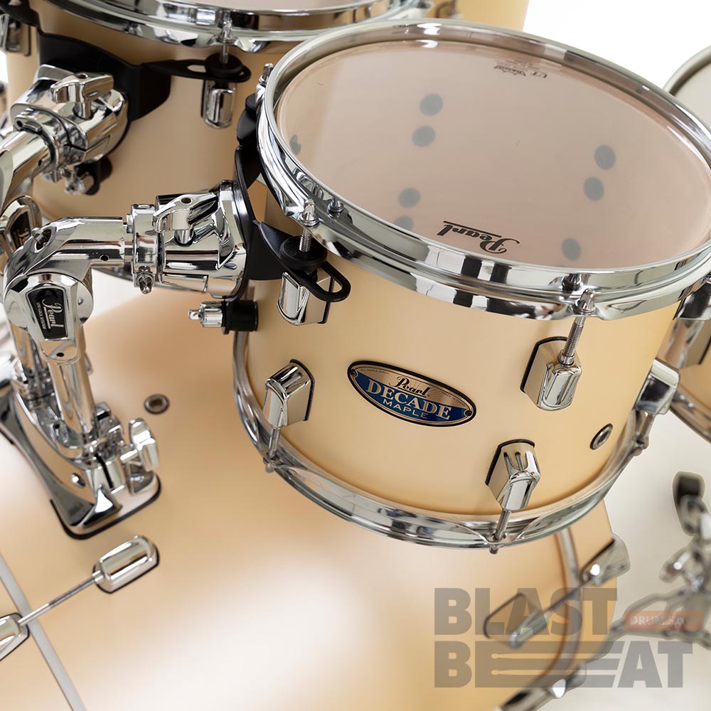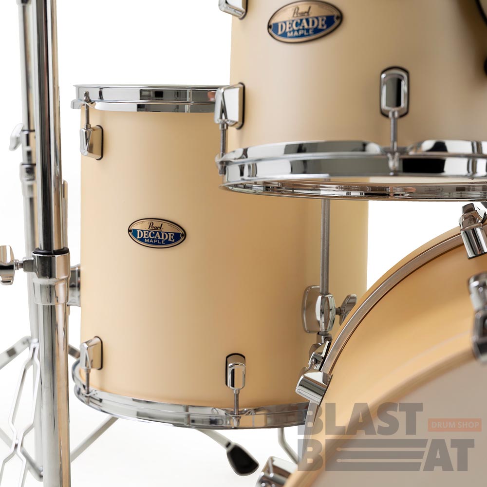 Комплект из 5 барабанов серии Decade Maple в расцветке Satin Gold Meringue от японской компании Pearl Drums. Конфигурация DMP925SP/C215 содержит: