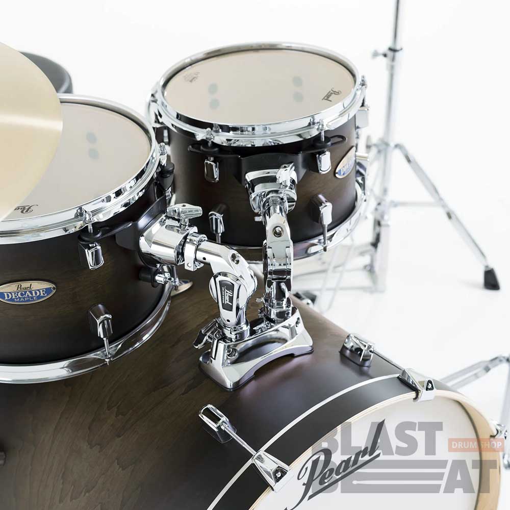 Шеллпак комплект из 5 барабанов без стоек серии Decade Maple в расцветке Satin Black Burst от японской компании Pearl Drums. Конфигурация DMP925SP/C262 содержит: