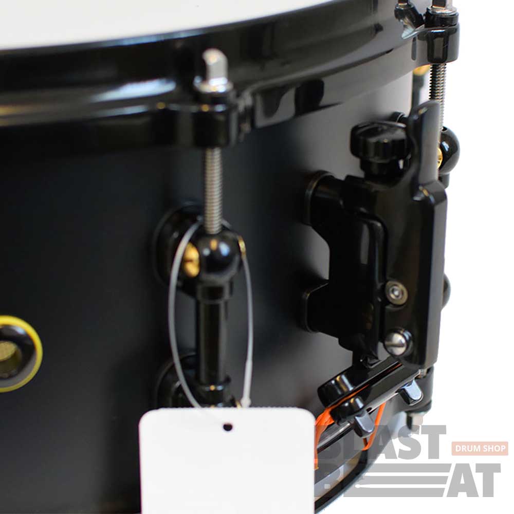 Его машинка подструнника SR-150 Click-Lock обеспечивает повышенную чувствительность, а визуальные штрихи, такие как черные/латунные лаги STL и яркие желтые прокладки, вдохновляют на идеальную работу. Конечным результатом является резкий, сухой, универсальный малый барабан, который быстро реагирует на агрессивную игру и подходит для различных стилей с расширенным диапазоном настройки.