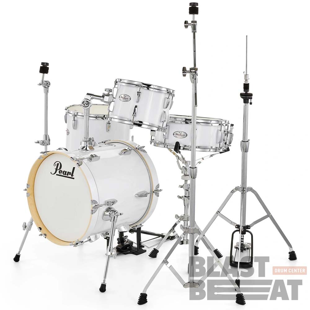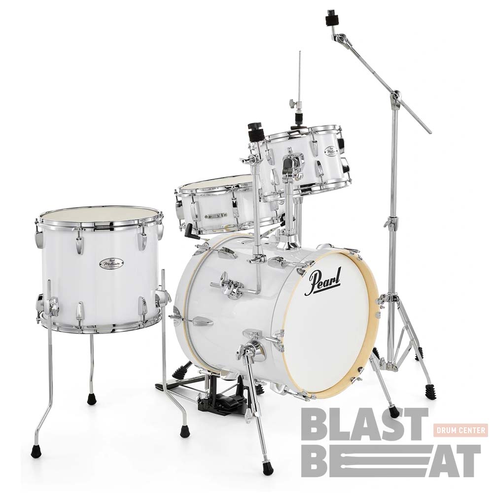 Комплект барабанов компактной акустической ударной установки Pearl серии Midtown в белой расцветке Pure White MT564/C-D33 с набором стоек и педалью HWP-50S.