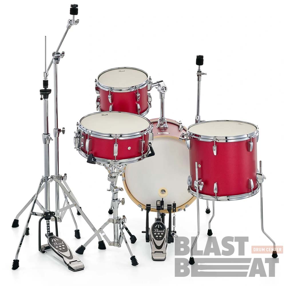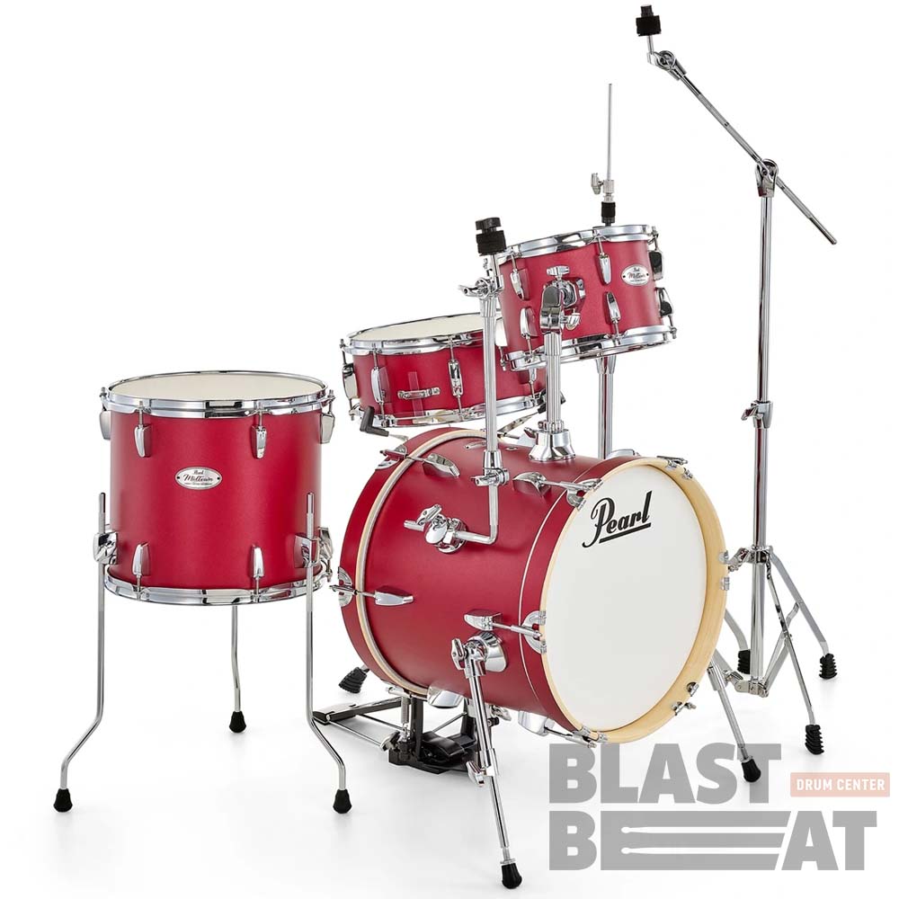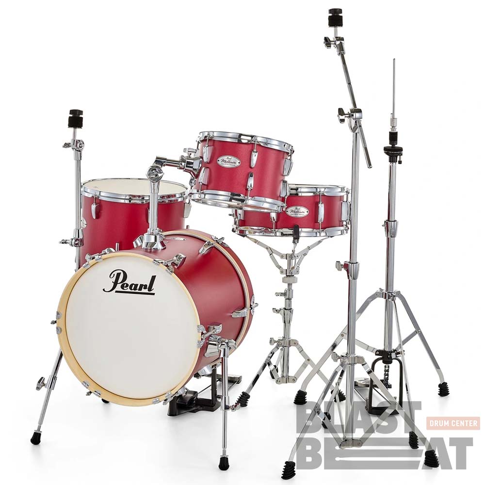 Комплект барабанов компактной акустической ударной установки Pearl серии Midtown в красной расцветке Matte Red MT564/C-D747 с набором стоек и педалью HWP-50S.