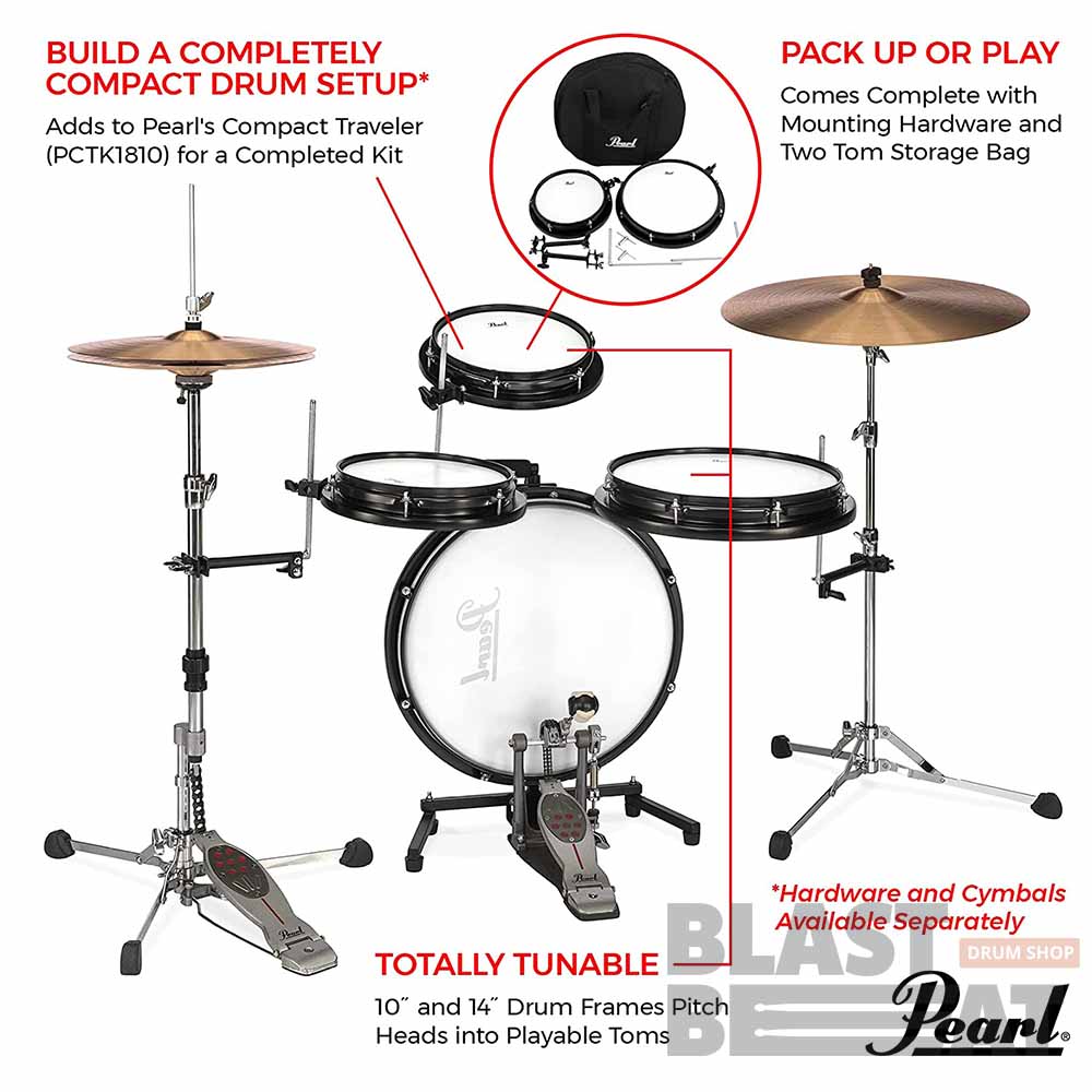 Комплект том-барабанов 10 и 14 дюймов и держателей PEARL PCTK-1014 создан для расширения барабанной установки Compact Traveler, сохраняя при этом компактность и портативность.
