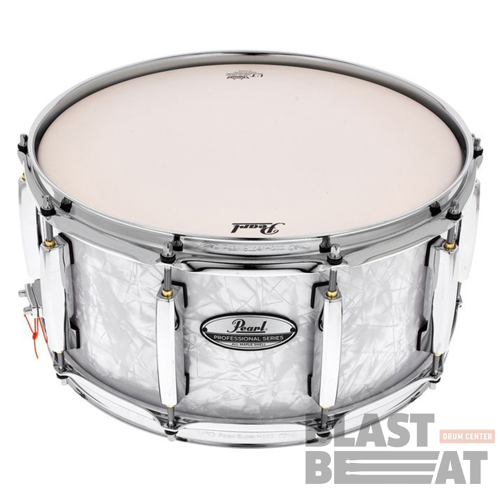 Кленовый малый барабан 14 на 6,5 дюймов в белой расцветке White Marine Pearl PMX1465S/C448 из новой серии Professional Maple от японской компании Pearl Drums