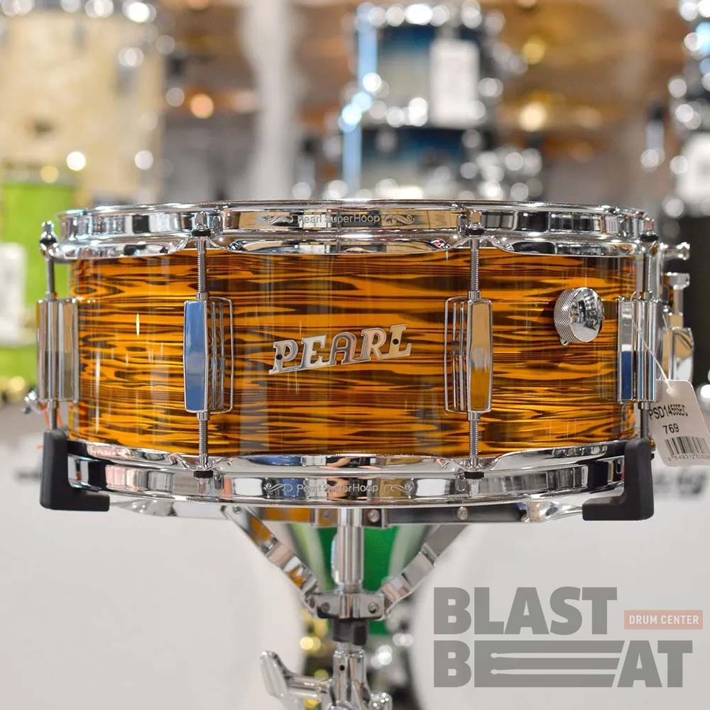 Красивый малый барабан из экзотических пород дерева 14 на 5,5 дюймов со встроенным демпфером из серии President Deluxe в расцветке Sunset Ripple (PSD1455SE/C769) от японской компании Pearl Drums.