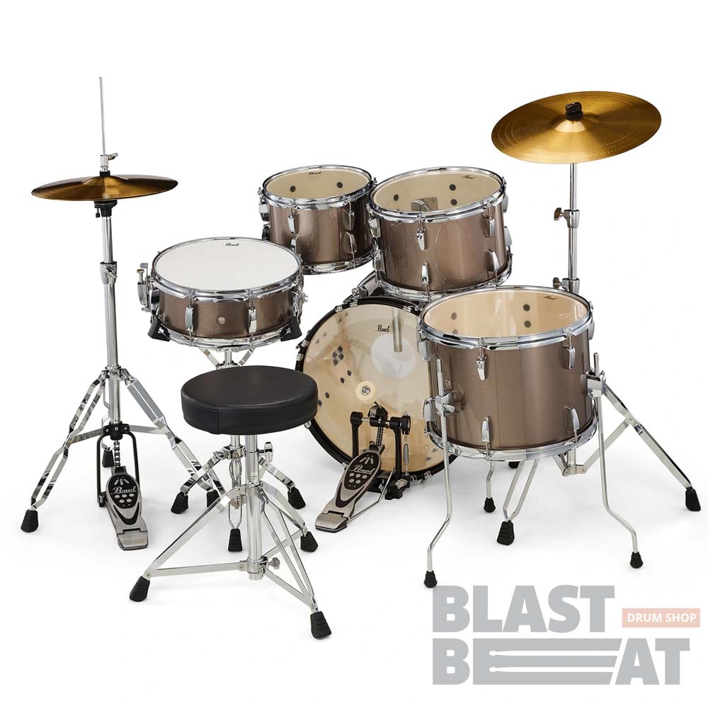Комплект акустической барабанной установки со стойками, тарелками, стулом и педалью Pearl Drums серии Roadshow. Отличный выбор для начинающих барабанщиков или для ребенка!
