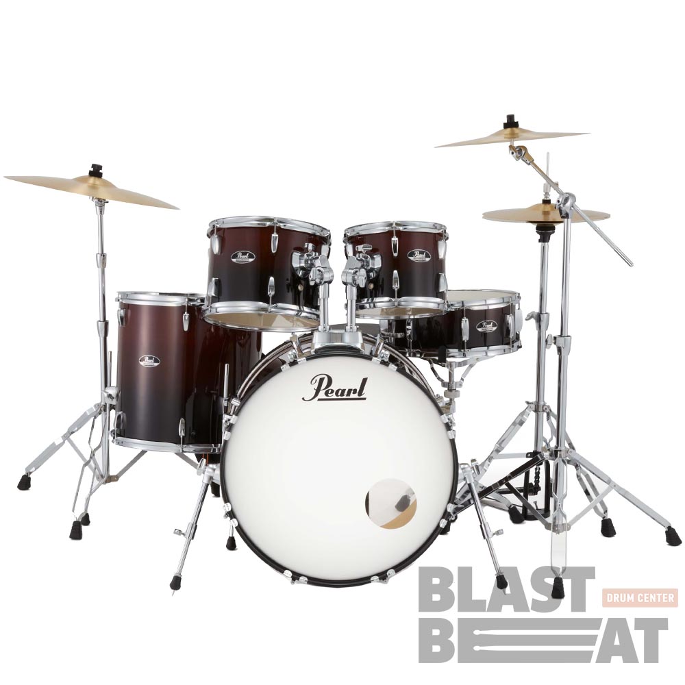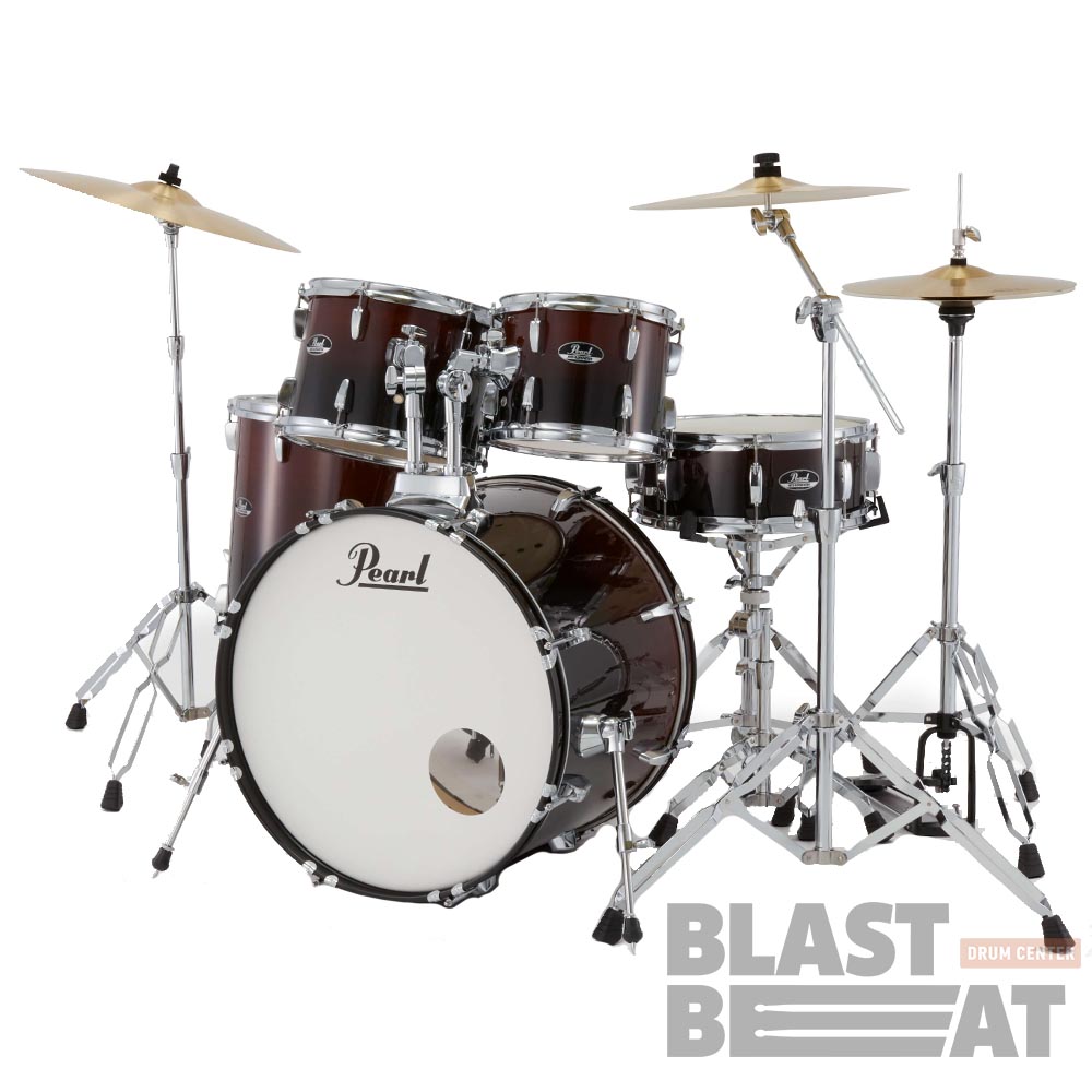 Полный комплект барабанов со стойками, стулом, педалью и тарелками Pearl Roadshow в расцветке #757 Garnet Fade (Гранатовый градиент) из обновленной серии 2023 года: