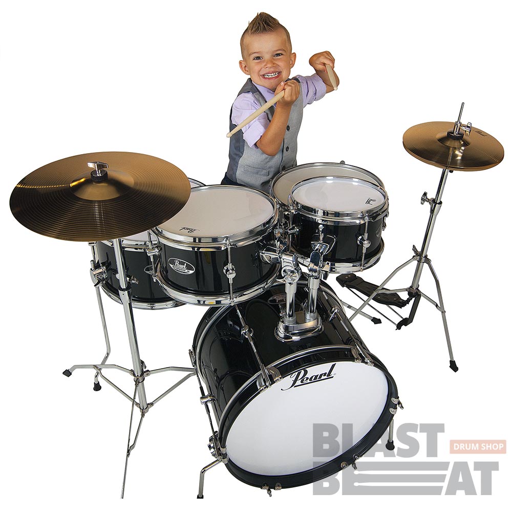 Полный комплект компактных и недорогих барабанов со стойками, стулом, педалью и тарелками Pearl Roadshow Junior Complete Set в расцветке Jet Black (Черный). Модель прекрасно подойдет для ребёнка!