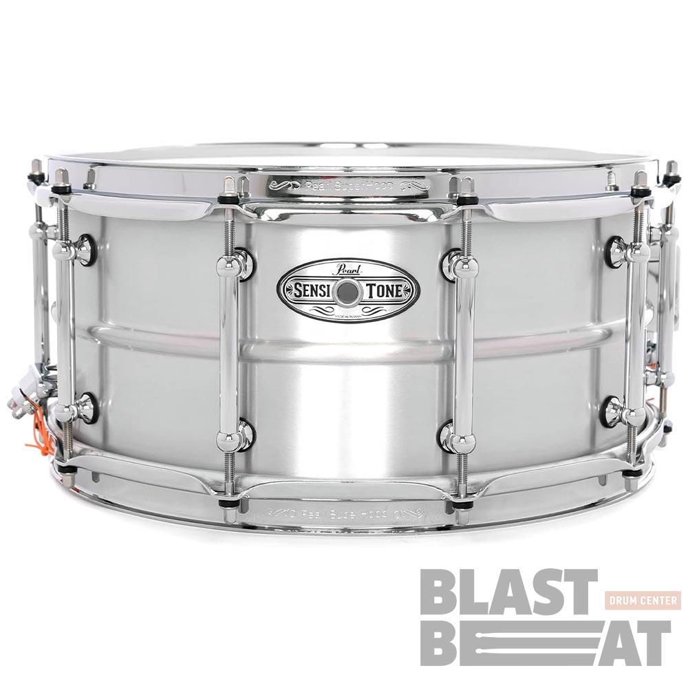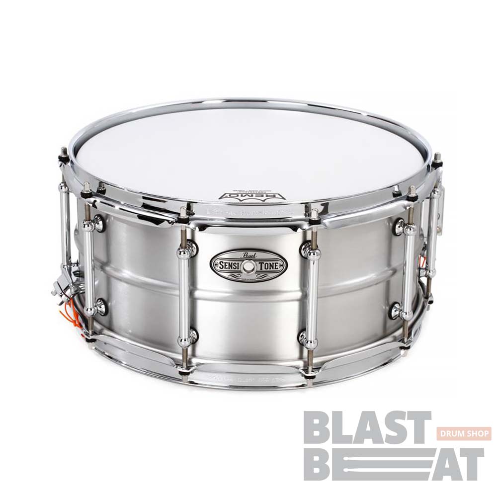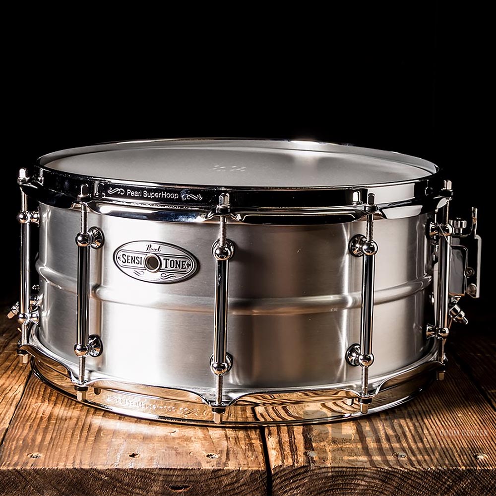 Топовый алюминиевый малый барабан 14 на 6,5 дюймов Pearl Drums серии Sensitone Elite STA1465AL с фирменными и узнаваемыми двухсторонними лагами.