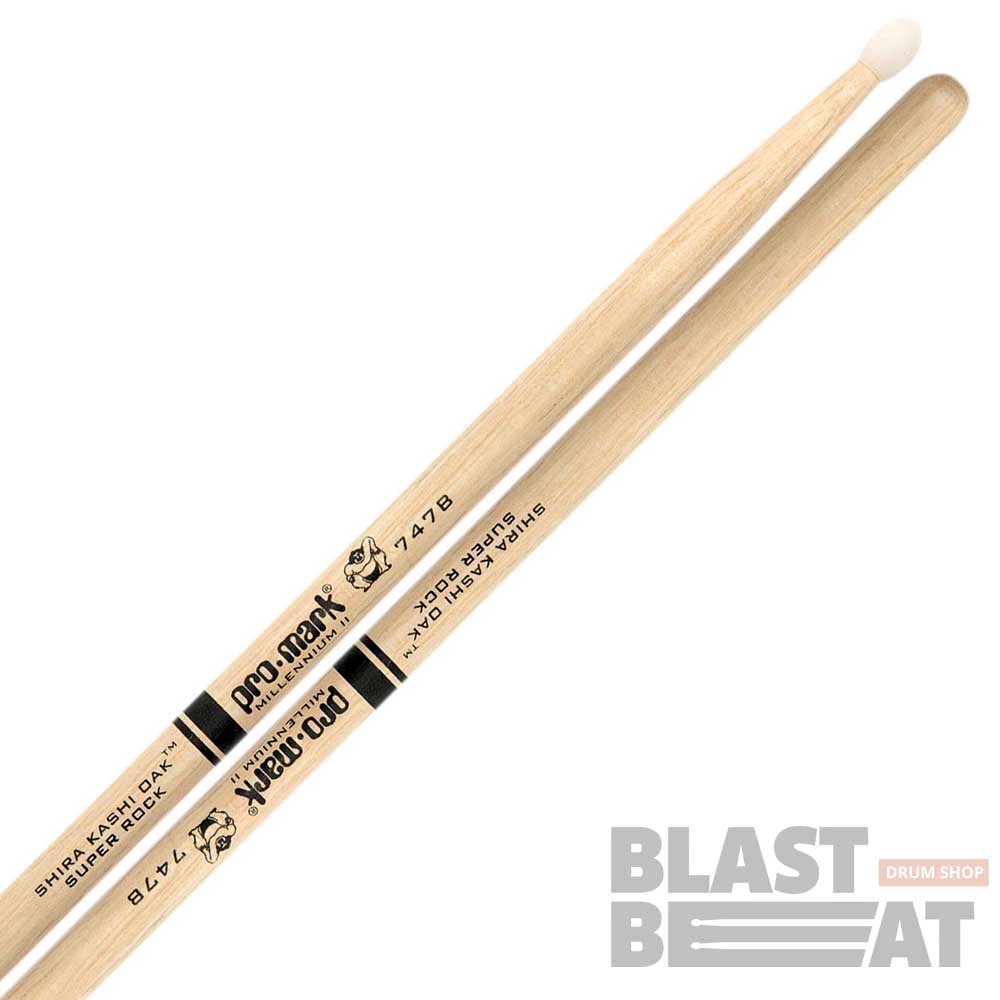 Барабанные палочки из дуба с нейлоновым наконечником Shira Kashi Oak 747B Nylon - "Super Rock" Pro-Mark PW747BN