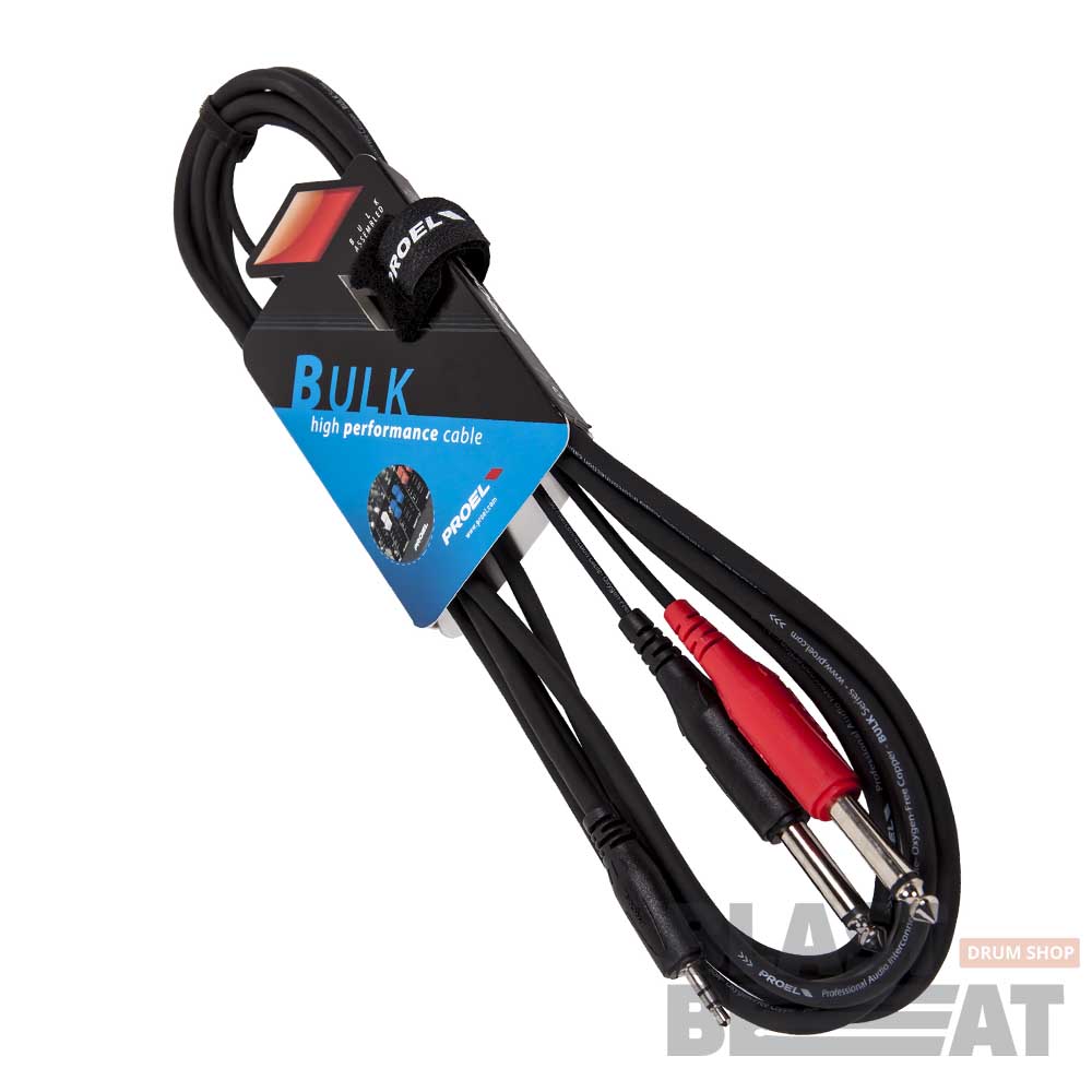 Аудио кабель переходник с 3.5 мини-джек стерео на два 6.3 джека моно, длиной 3 метра, из серии BULK от компании Proel BULK505LU3.