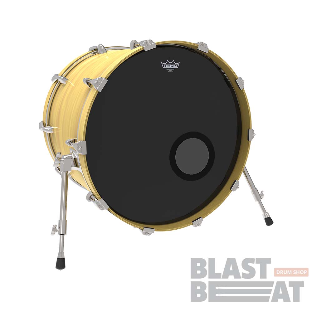 Черный глянцевый однослойный пластик с отверстием 5 дюймов для бас-барабана диаметром 22 дюйма Ambassador Ebony ES-1022-00-DM от компании Remo.