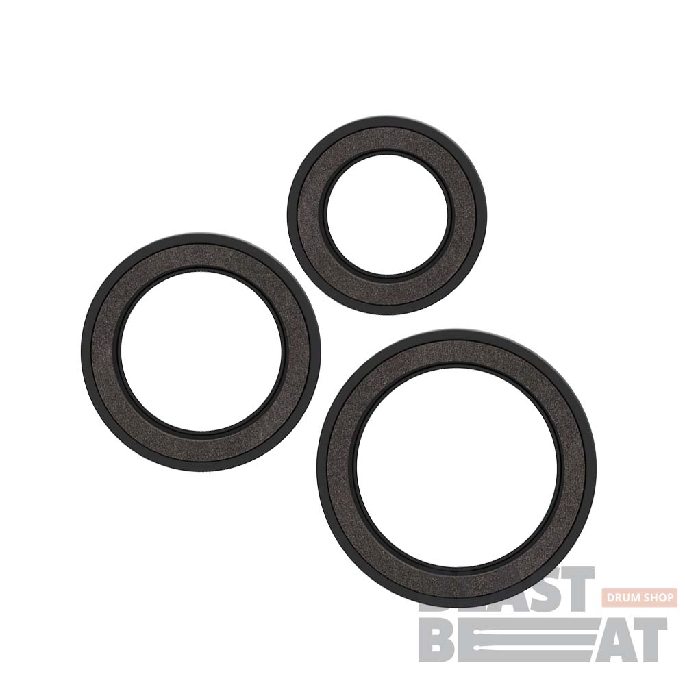 Демпфирующие кольца контроля громкости звука барабанов Muff'l от компании Remo. Комплект из трех колец для барабанов диаметром 12, 13 и 16 дюймов (том-пак).