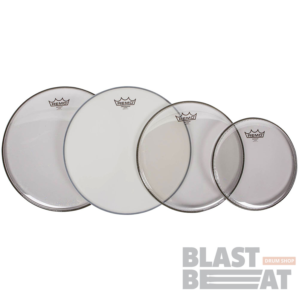 Комплект двухслойных барабанных прозрачных пластиков серии Emperor Clear для барабанов 10, 12 и 16 дюймов + пластик Ambassador Coated на 14 дюймов.