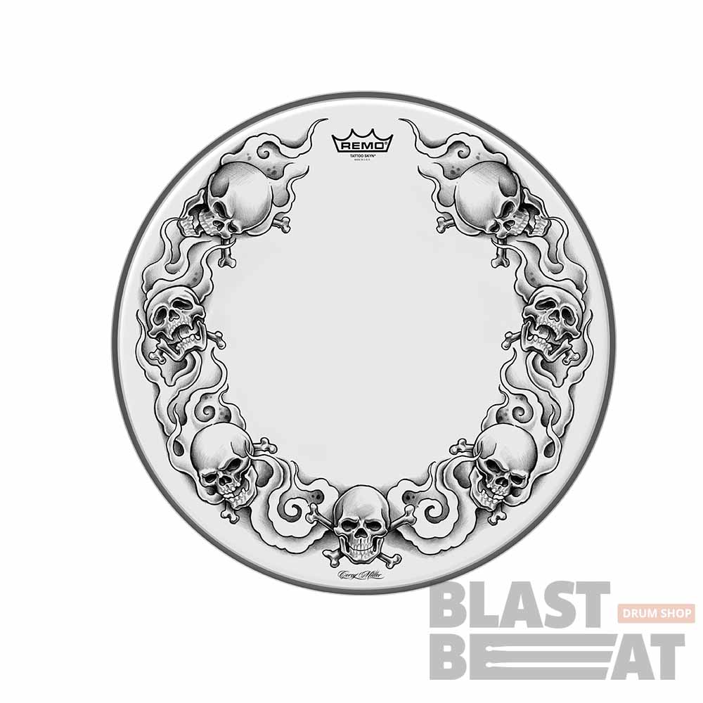 Стильный 14-дюймовый барабан REMO Tattoo Skyn TT-0814-AX-T01 с изображением черепов.