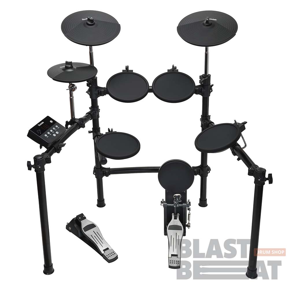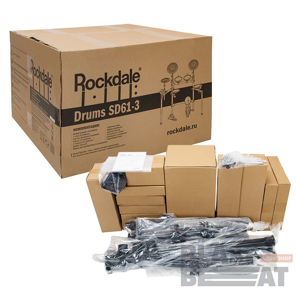 Пэд бас-барабана, два тома, напольный том, малый барабан и три тарелки (hi-hat/crash/ride) делают Rockdale SD61-3 полноценной электронной ударной установкой.