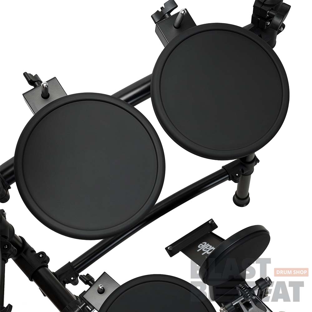 Пэды и тарелки покрыты силиконом для снижения уровня шума, производимого при ударе по ним.