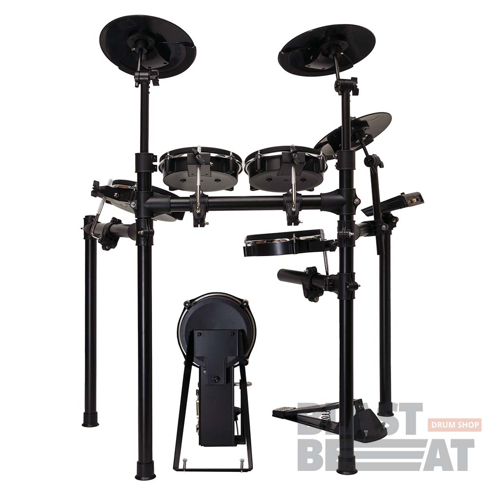 - Пэды барабанов: 8” сетчатый двухзонный малый барабан, 8” сетчатые двухзонные томы (3 шт), 8” сетчатый пэд бас-барабана