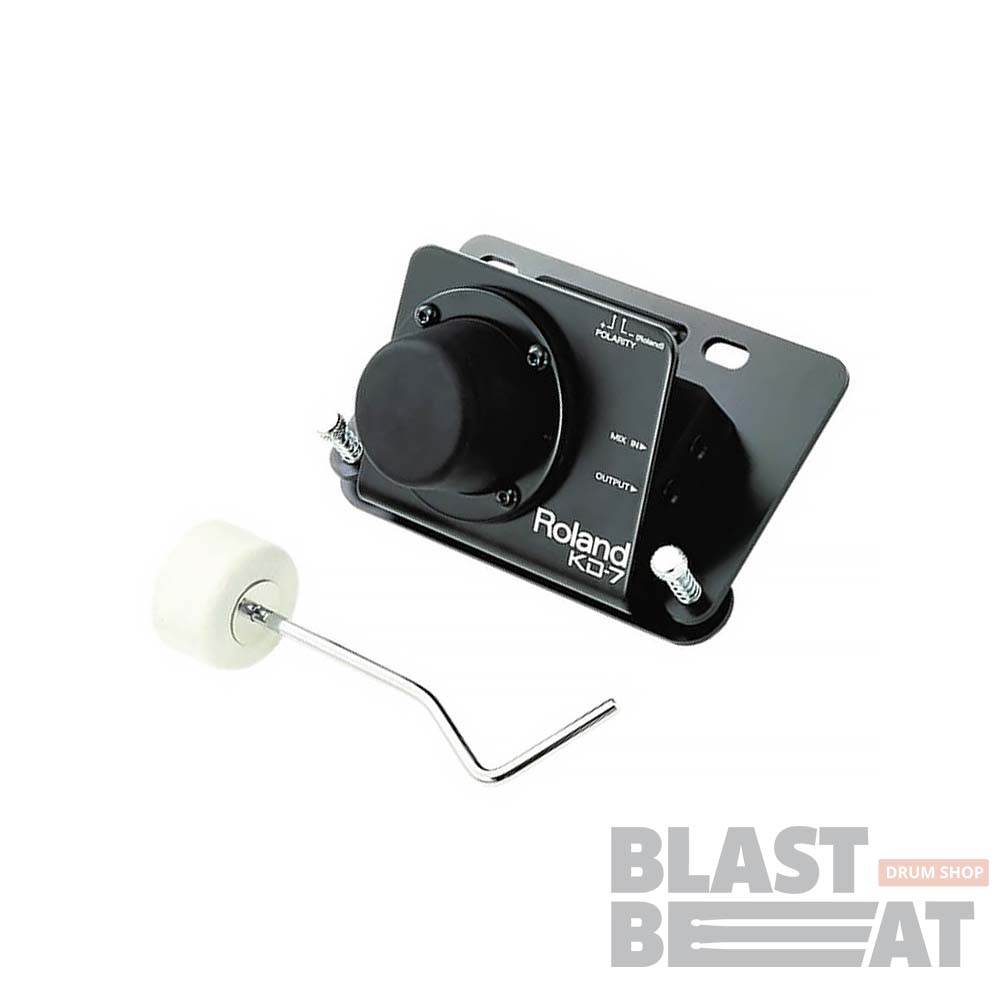 Компактный тихий электронный пэд бас барабана Roland KD-7 с уникальной изогнутой фетровой колотушкой может использоваться со стандартной педалью.