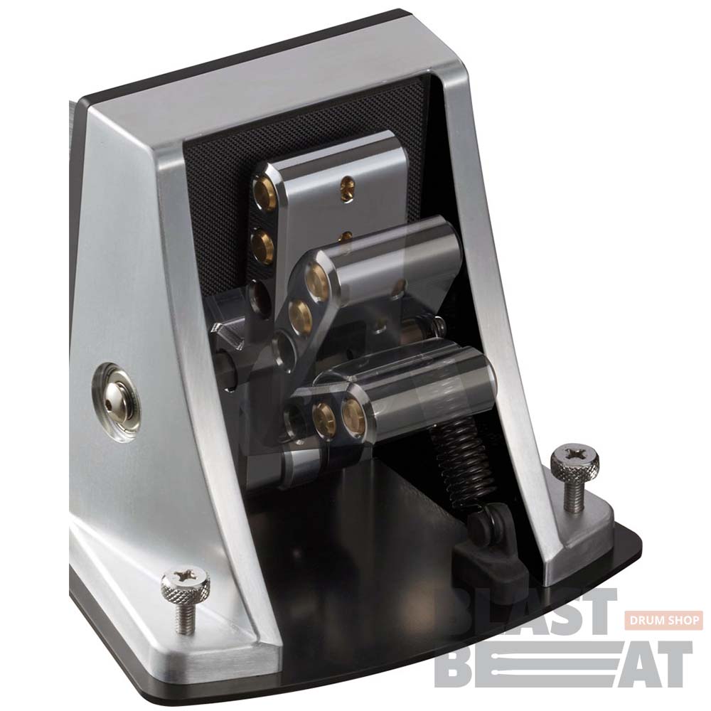 KT-10 имеет возможность регулировки хода педали для большего удобства игры. Достаточно убрать или добавить грузики в ударном механизме и отстроить натяжение пружины, и вы получите необходимый результат. Дополнительный вход позволяет подключить еще одну педаль KT-10 для игры на двух бас-бочках.