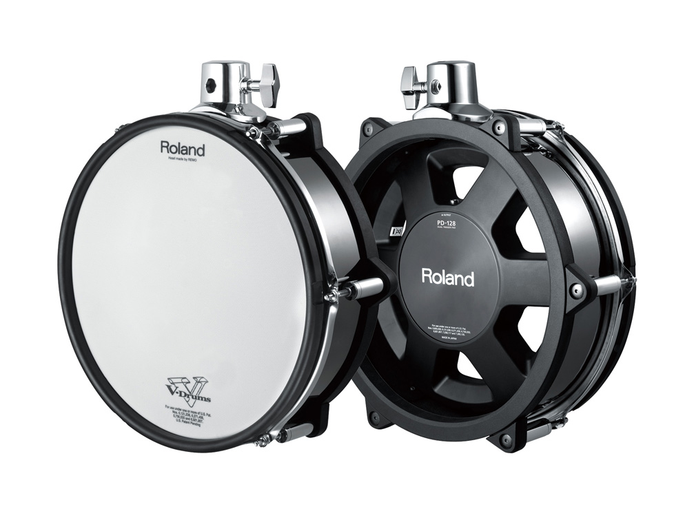 12-дюймовый цифровой пэд барабан с тихим сетчатым пластиком Roland V-Pad PD-128-BC Black Chrome Pad Drum, со специально разработанным новым сенсором обода.