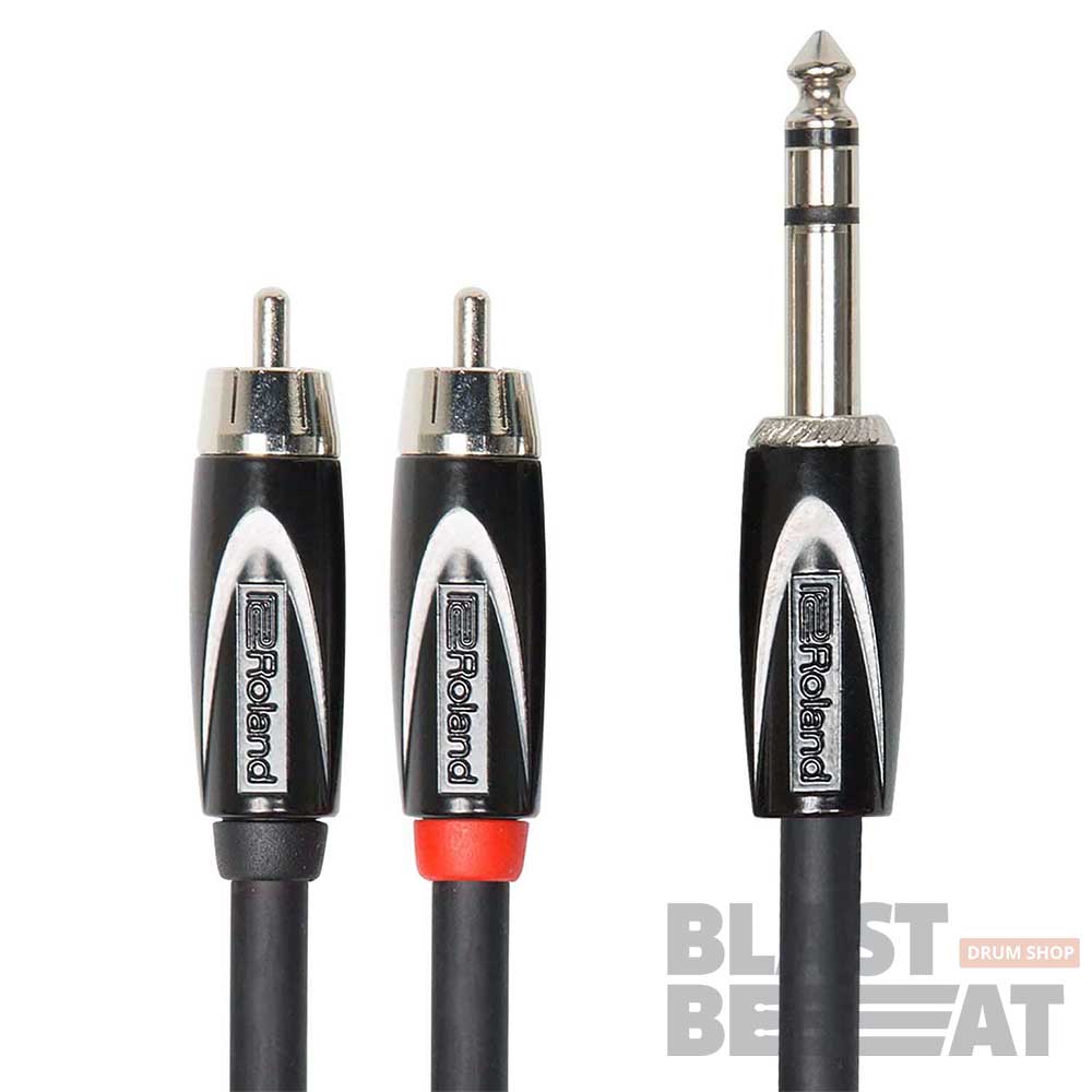 3-метровый кабель с разъемами стерео джек (Jack TRS 6.3 мм) с одной стороны и тюльпан (2x RCA) с другой стороны Roland RCC-10-TR2RV2 серии Black.