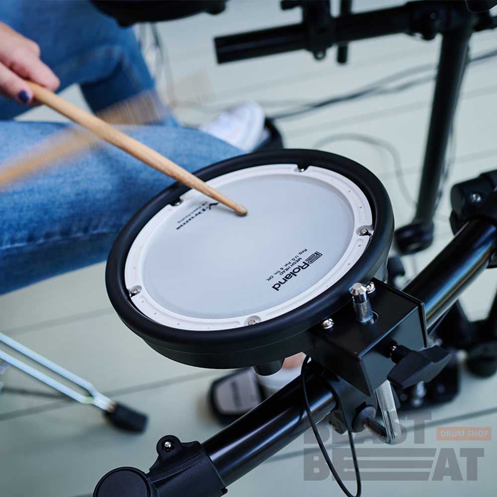 Несмотря на то, что пэды меньше, чем у более старших моделей, вы все равно получите незабываемое удовольствие от игры на малом барабане PDX-8 и трех томах PDX-6A, поскольку все они оборудованы удивительно бесшумными двойными сетчатыми мембранами компании Roland.