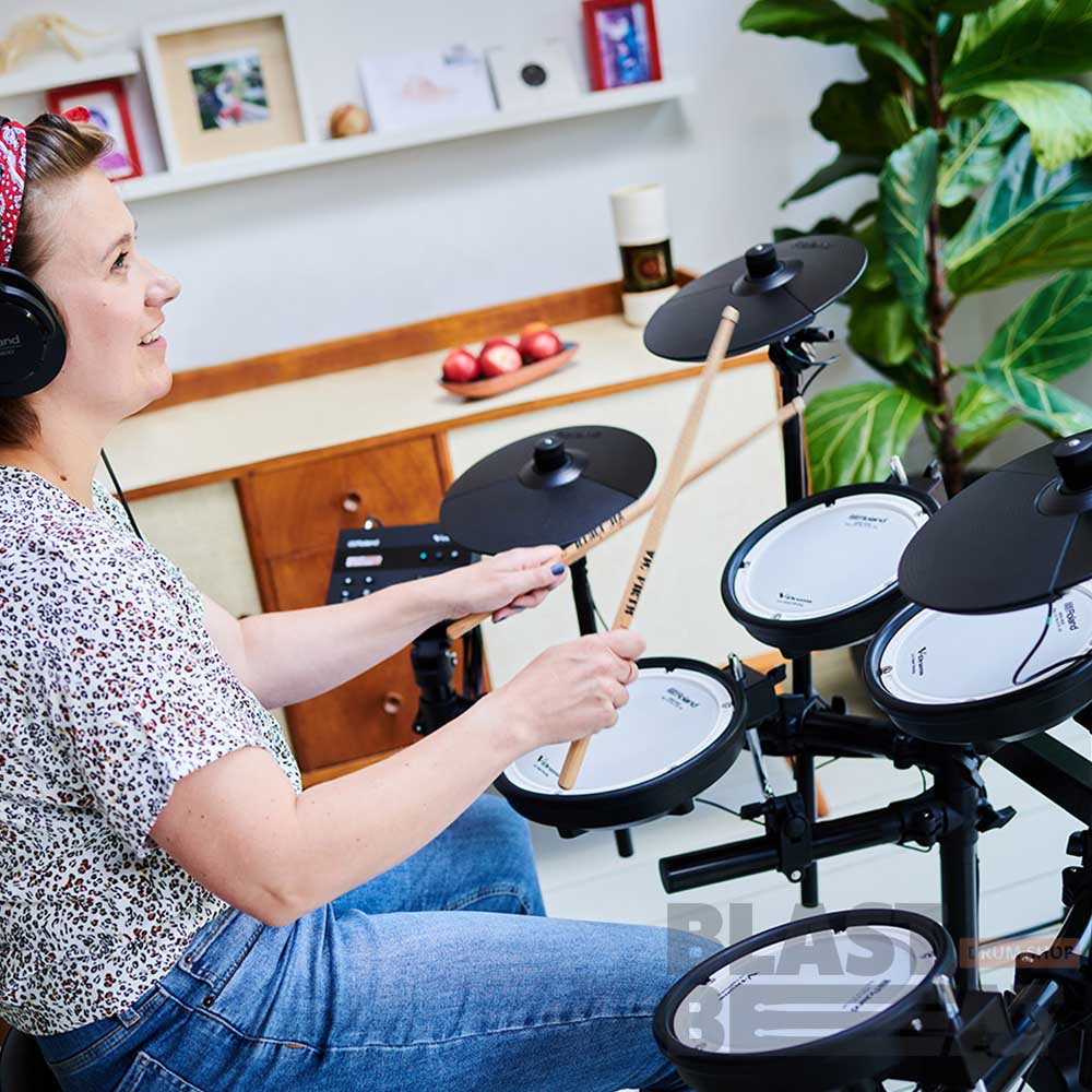 TD-07DMK ― комплект электронных ударных инструментов, идеальный для домашнего использования, просто установите низкую громкость, когда разминаетесь или тренируетесь в наушниках. Сама рама ударных и сетчатые мембраны пэдов также производят гораздо меньше шума, чем даже установки цифровых ударных меньших размеров, что очень важно, если вы играете там, где можете доставить неудобство окружающим. Наши сетчатые мембраны минимизируют уровень производимого при игре на пэдах шума, но не в ущерб качеству игры, специальная система демпфирования пэда бас-барабана позволяет снизить как уровень шума, так и вибраций. Даже конструкция рамы ударных предусматривает подавление шума, передающегося на расположенное внизу помещение, а при необходимости усиления звукоизоляции компания Roland предлагает ряд дополнительных решений.