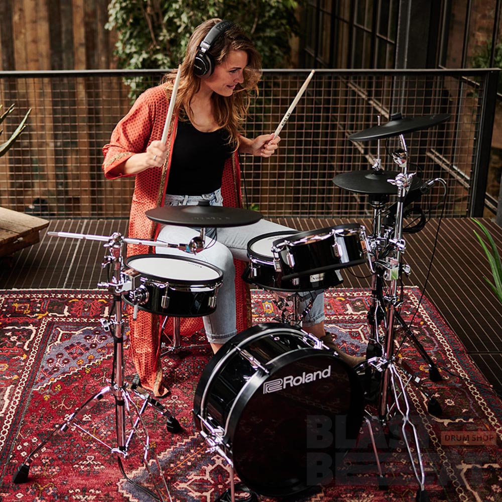 Установите большие пэды барабанов и тарелок комплекта VAD103 на стандартные стойки, чтобы вместе с 18-дюймовым бас-барабаном создать ощущение игры на установке акустических ударных, вместе с тем компактные размеры позволят установить барабаны дома практически где угодно.